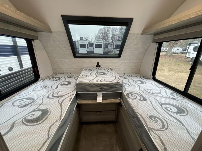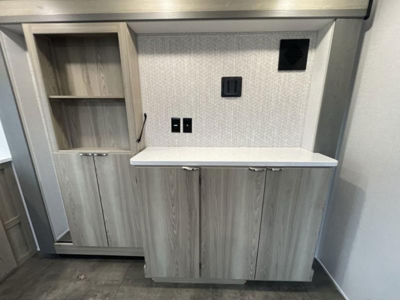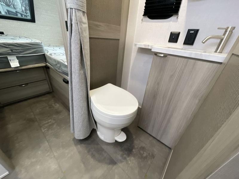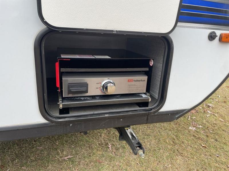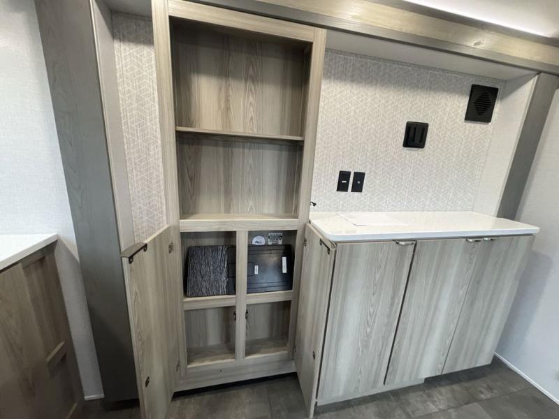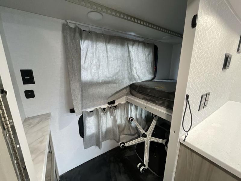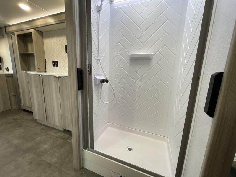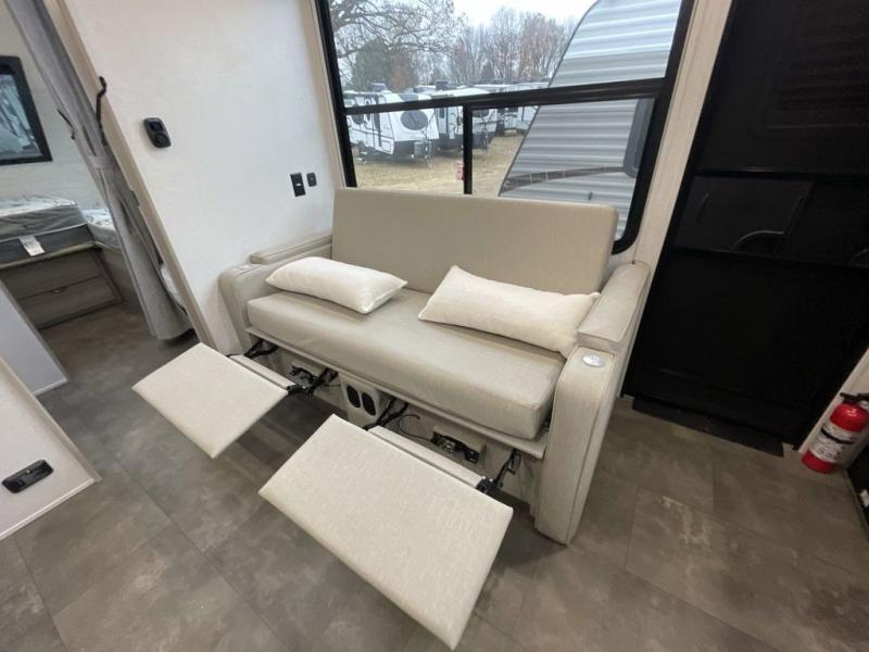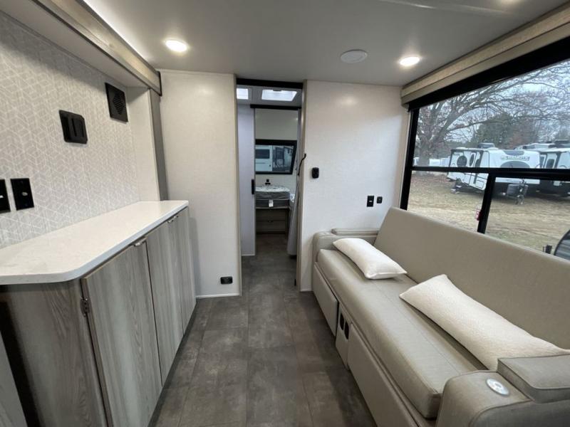 Versatility is found throughout this travel trailer! The front two twin beds convert to a king bed for comfortable sleeping at night, plus there is a split bunk bed slide for an additional sleeping space. The bunk bed is located behind the spice rack door and TV for your entertainment and cooking needs. Speaking of cooking, you can prepare your best home cooked meals with the cooktop and store any leftovers in the dual swinging 12V refrigerator. Relax each night in the theater seating and freshen up in the walk-through bathroom each morning. If you wish to go off grid then you can add the optional solar extended 200W power package!
