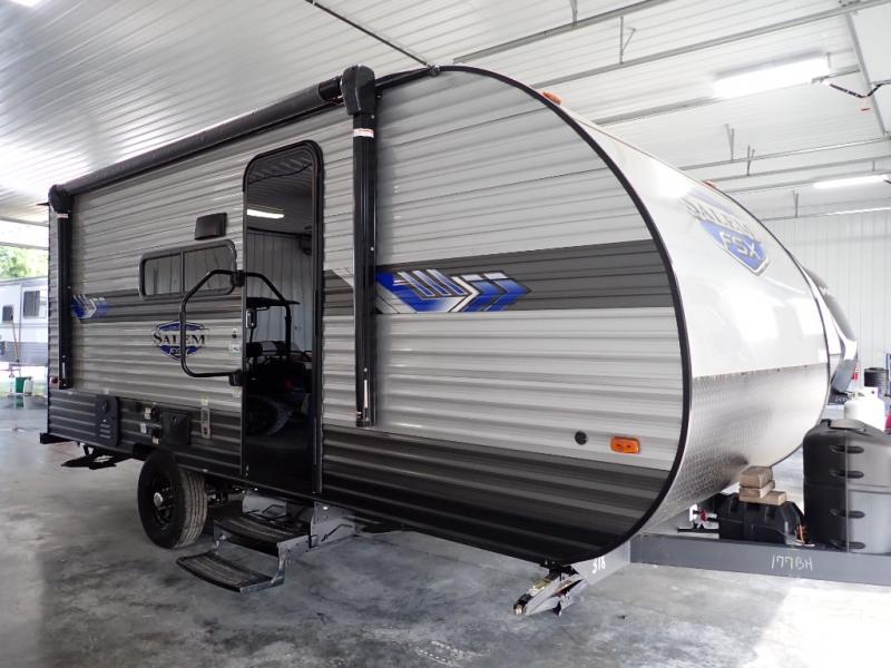The Forest River Salem FSX travel trailers and toy hauler travel trailers are ultra comfortable and lightweight, perfect for first time or seasoned campers alike! You will love how easy it will be to relax with residential features that will make your space feel just like home, and the durable construction means you can enjoy your RV for years to come. There are a wide variety of floorplans to choose from, including couple's trailers, bunk models, and toy haulers, all with full bath and kitchen amenities and plenty of storage for all your gear!