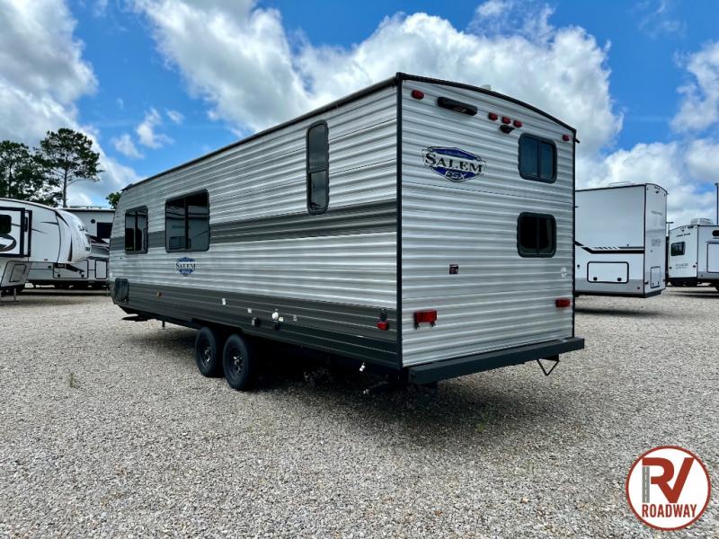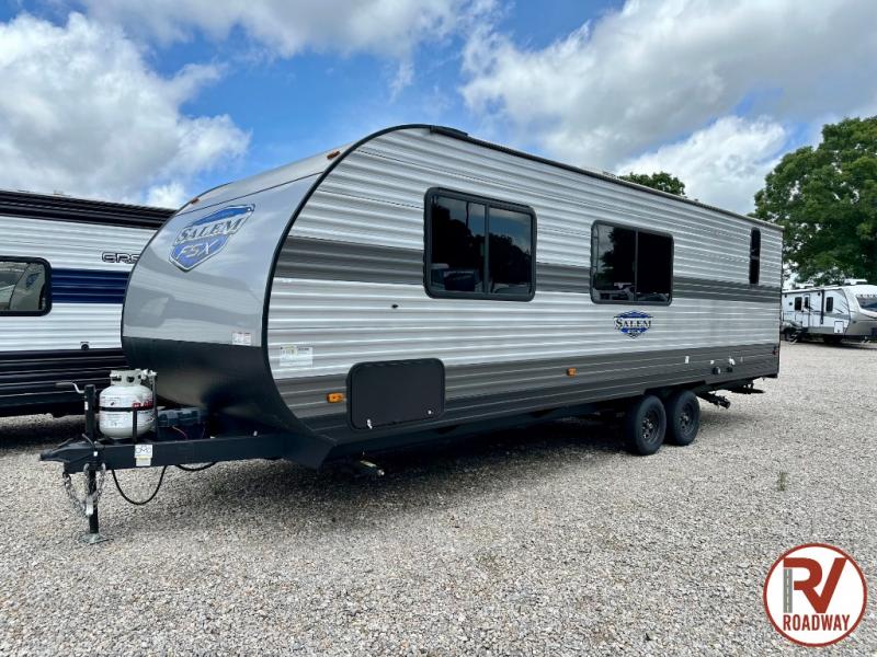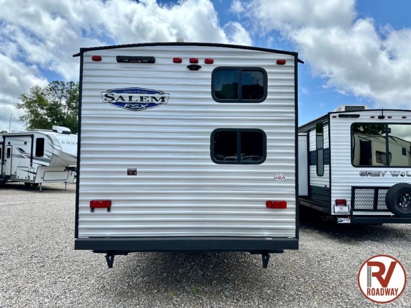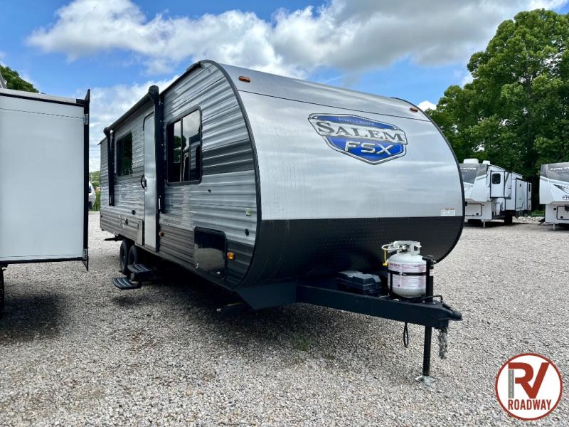 The Forest River Salem FSX travel trailers and toy hauler travel trailers are ultra comfortable and lightweight, perfect for first time or seasoned campers alike! You will love how easy it will be to relax with residential features that will make your space feel just like home, and the durable construction means you can enjoy your RV for years to come. There are a wide variety of floorplans to choose from, including couple's trailers, bunk models, and toy haulers, all with full bath and kitchen amenities and plenty of storage for all your gear!