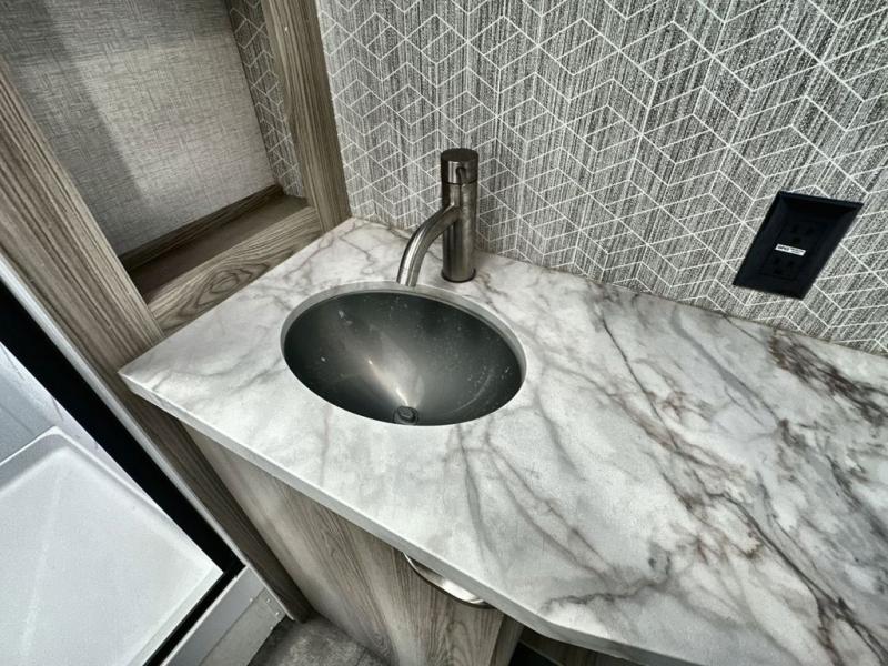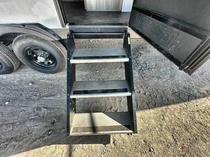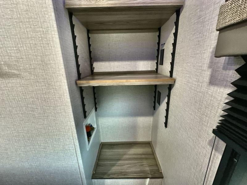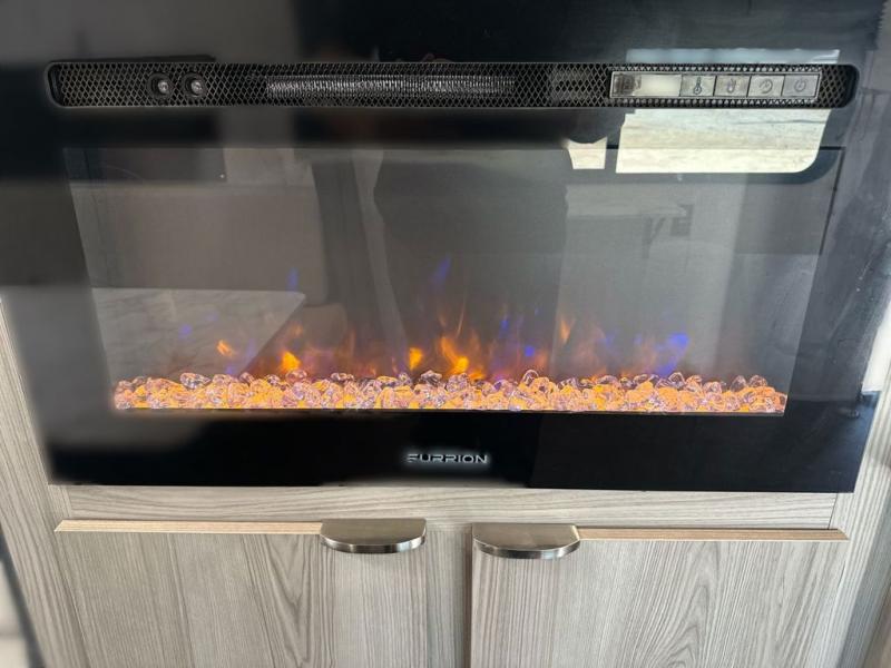 Make the most of your vacations with this Platinum version MAX toy hauler! The 14' garage area includes dual sofa sleepers with a table in between to dine at, plus a 3,000 lb. ramp door for easy unloading. Enjoy the fireplace for a cozy evening indoors while your dinner is cooking on the three burner cooktop or being heated up in the microwave. After a fun day of trail riding, you can clean the mud out of your hair with the 30" x 36" shower with a skylight in the full bathroom. The front private bedroom has a queen bed to lay your head on at night, shoe storage under the bed, a walk-in closet, and wardrobes on either side of the bed for even more clothing storage space.