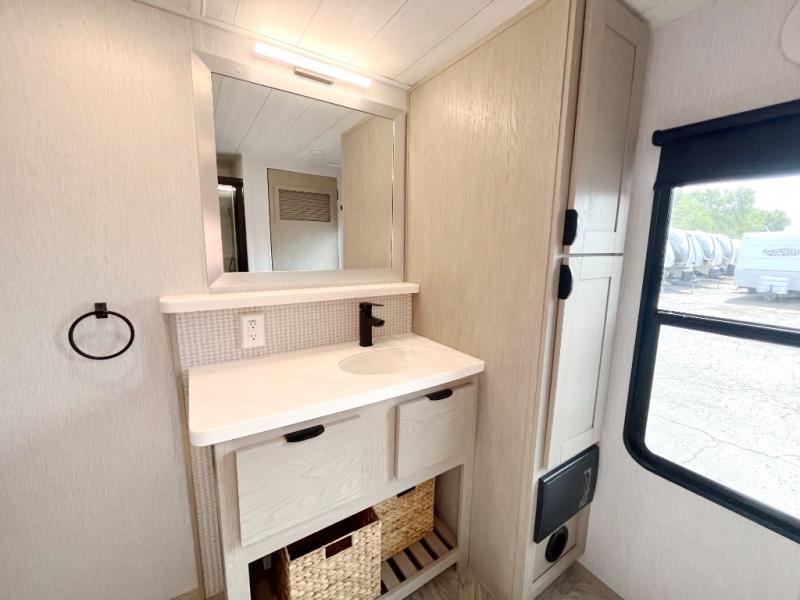You will experience a home away from home with any one of these Forest River Salem Grand Villa destination trailers! Their construction consists of a 12" forged I-beam frame, a cambered chassis, and plywood floor decking, as well as 5" bowed truss roof rafters, 3/8" roof decking, and color coded water lines to make life easier. The one-piece, seamless slides and 102" interior living room height makes for more walking around space. A Best in Class Value package includes upgraded designer furniture, a central vacuum with sweep attachment, and stainless steel kitchen appliances. Plus, it also features a heated and enclosed Accessi-Belly with removable panels and an exterior LED light strip under the awning. Come choose your favorite model today!