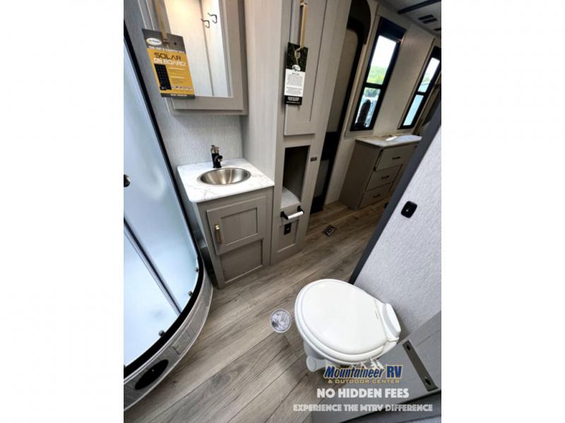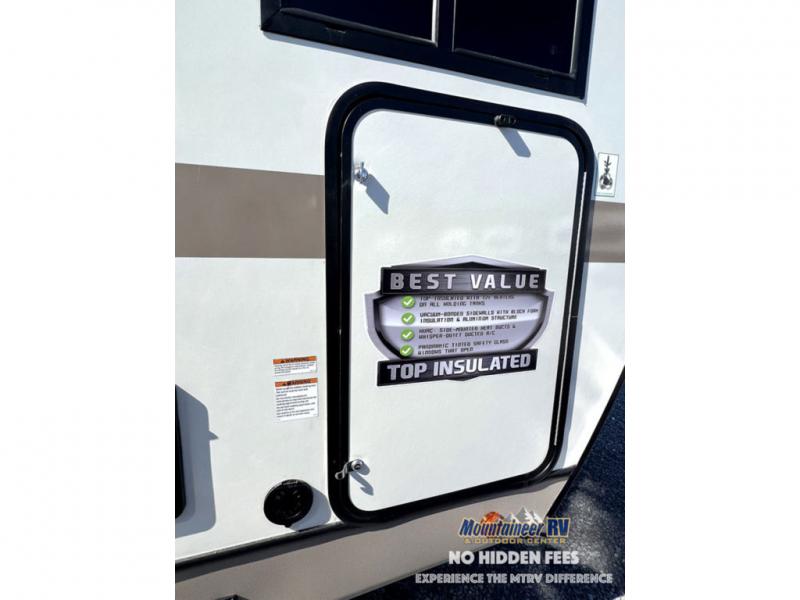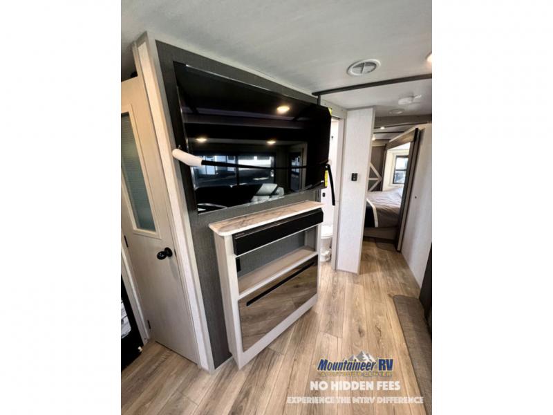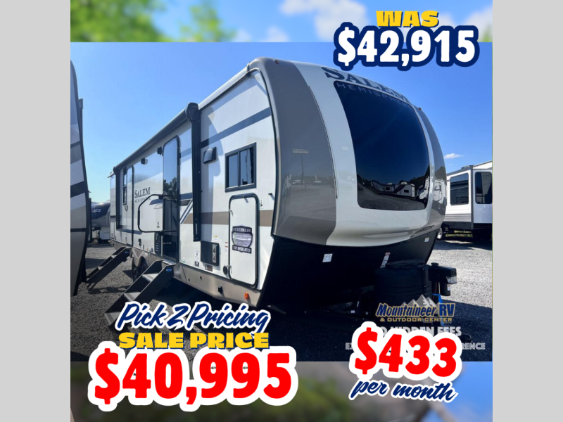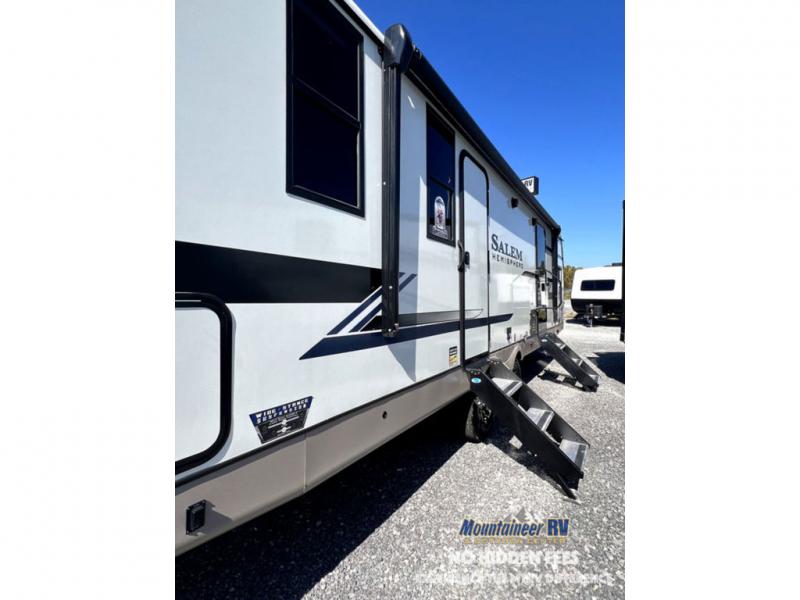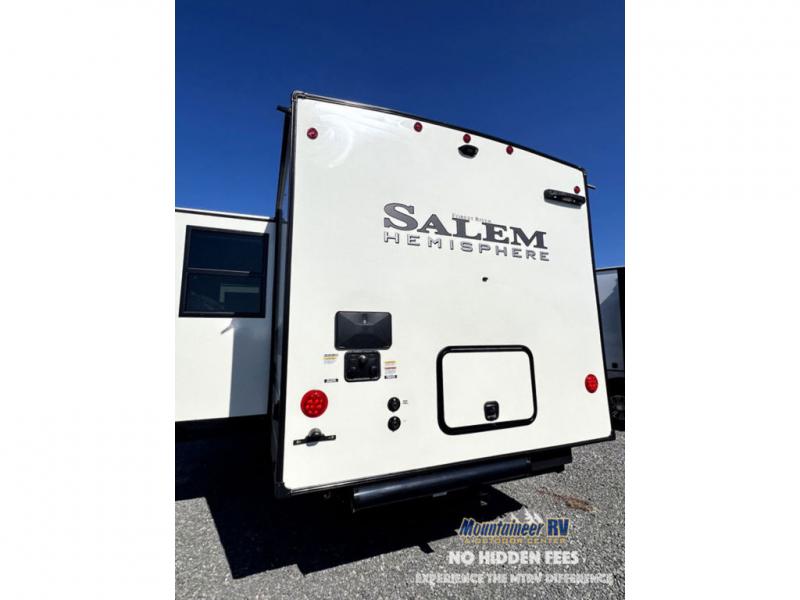 With each Forest River Salem Hemisphere fifth wheel and travel trailer, there are vacuum bonded "Aluma Frame" sidewalls and floors and square windows with built-in shades with reflecting thermal-foil backing and painted hardwood trim. You'll also find Goodyear radial tires with black accented rims and a 60K BTU on-demand tankless water heater for hassle-free camping. The 15K BTU Quiet Cool A/C on a Race Track duct system will keep you comfortable all summer long, and the LED TV and Furrion soundbar with FM/Bluetooth/HDMI/USB will keep you entertained on rainy days. You'll find many comforts inside, along with ample storage space for your belongings and gear, full bath and kitchen amenities, plus comfortable seating and sleeping spaces!