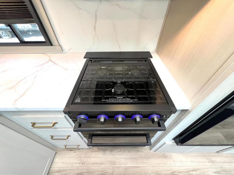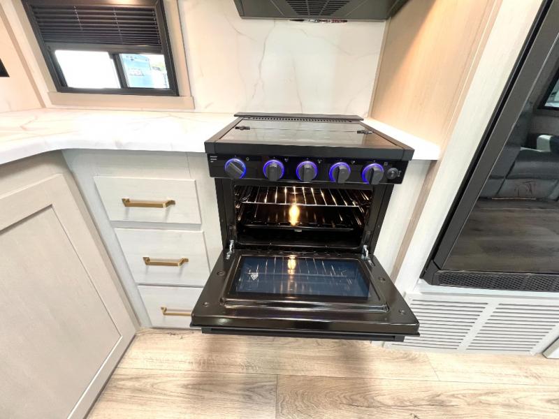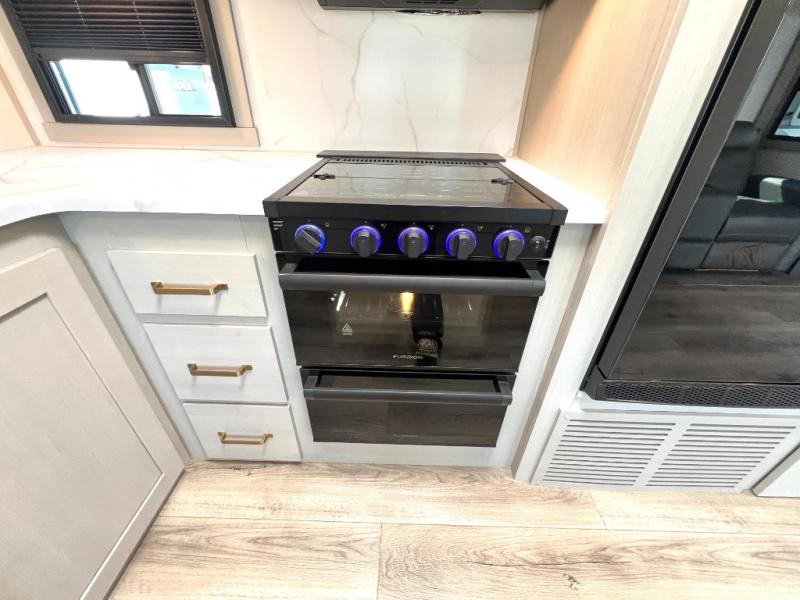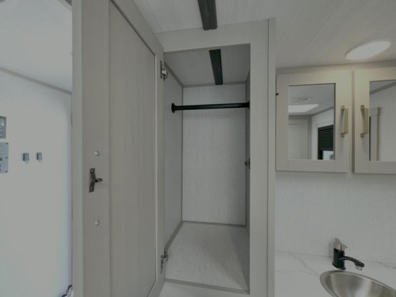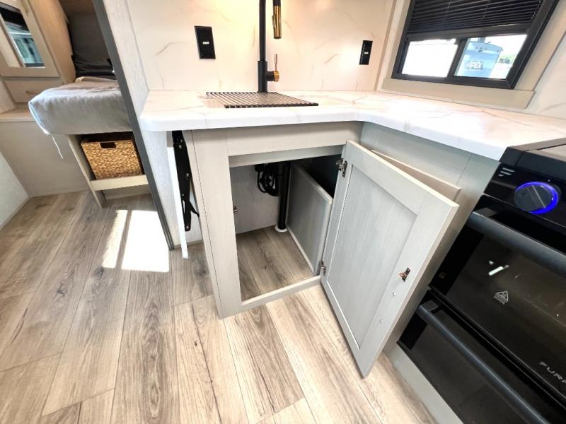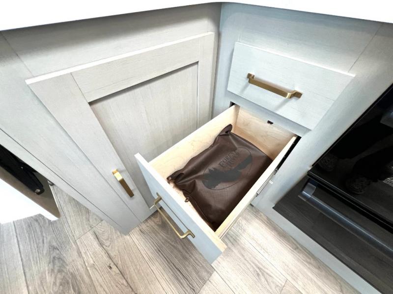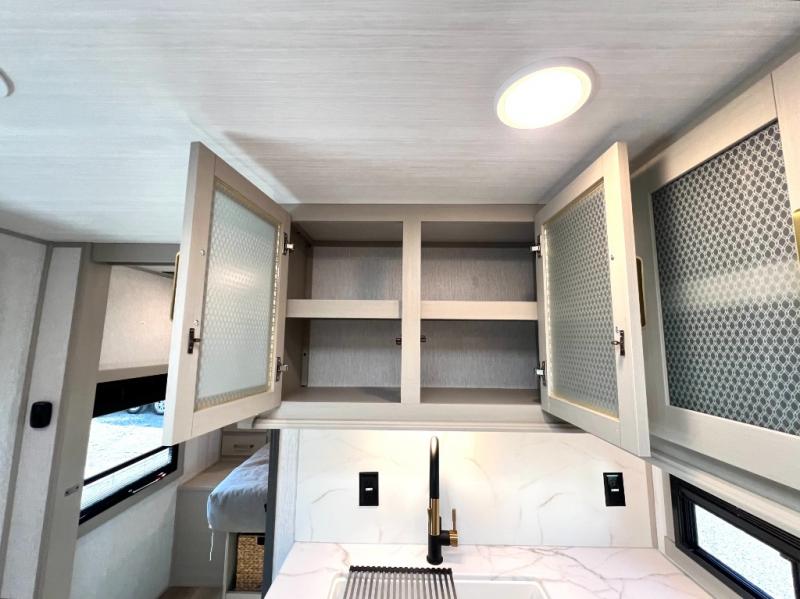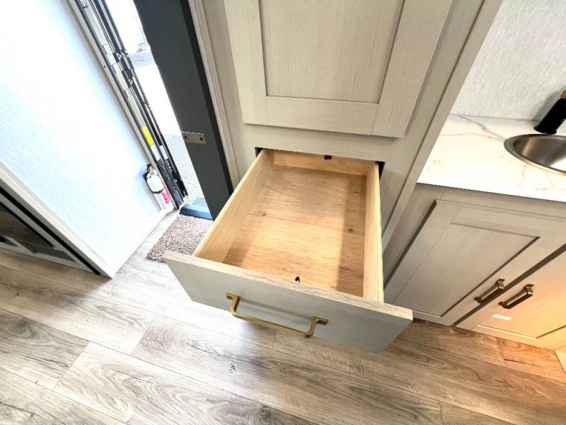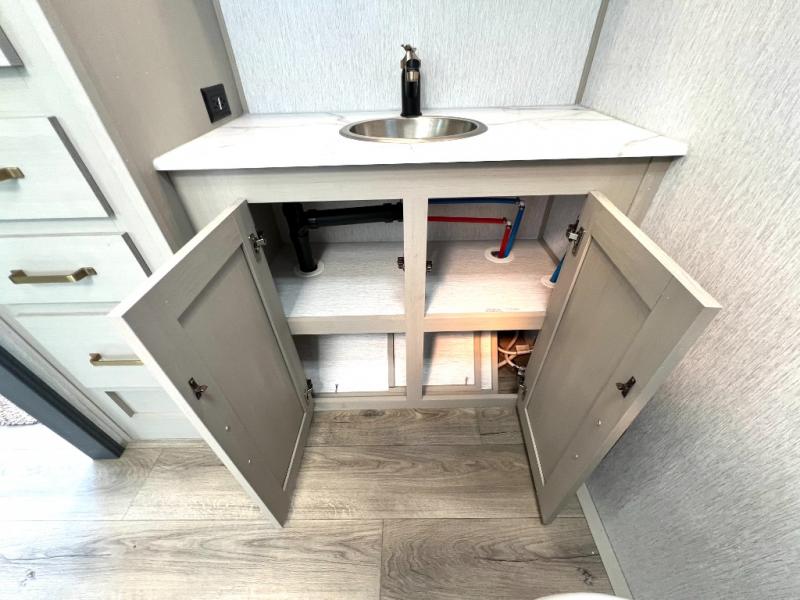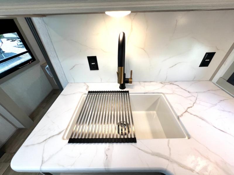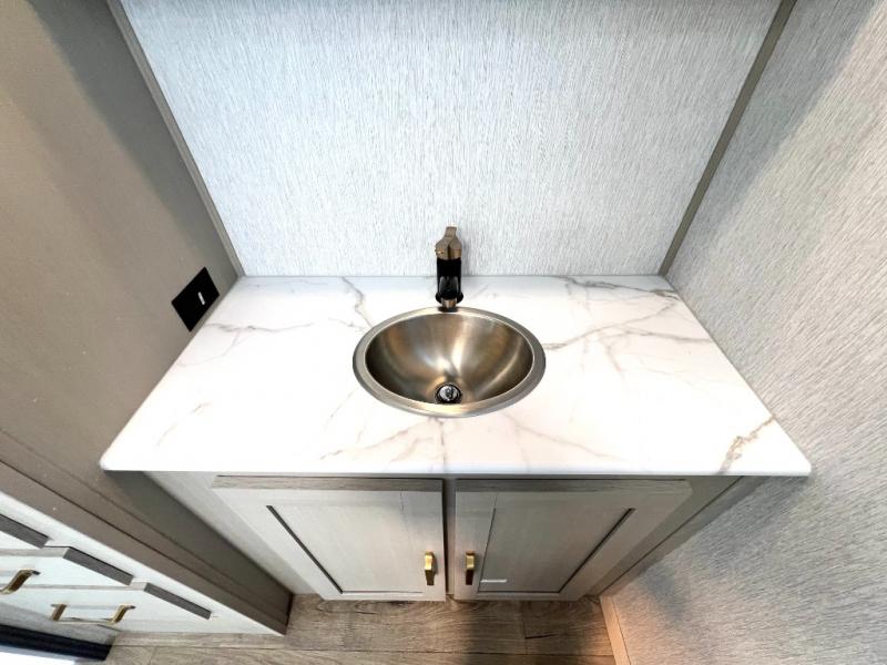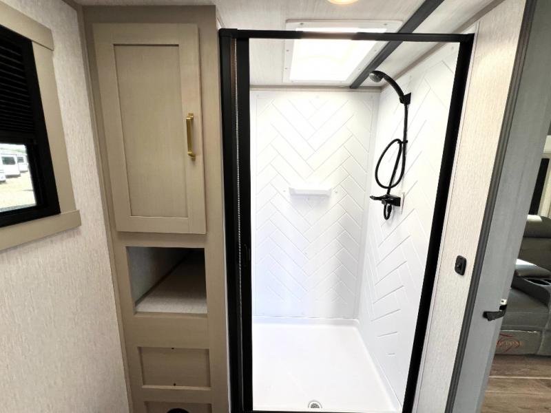 With any Salem Hemisphere Hyper-Lyte travel trailer by Forest River, you will appreciate a wide stance axle and Goodyear radial tires for smooth towing, plus vacuum bonded "Aluma Frame" sidewalls and floor for added durability. There are also square windows with built-in shades with reflecting thermal-foil backing and painted hardwood trim to help keep your trailer cool during the summer. The 2" accessory hitch receiver will allow you to bring along more camp gear and the tankless water heater is a feature you won't want to camp without! Nordic Marble countertops throughout and corresponding Frozen Nordic backsplash will give your space a more modern look, and the LED TV and Furrion soundbar will wash away rainy day blues. Outside, your furry friend will be happy with the shaded pet tether and security hook, and there is even an outside shower with hot and cold water to fill the dogs water bowl and wash off hiking boots!
