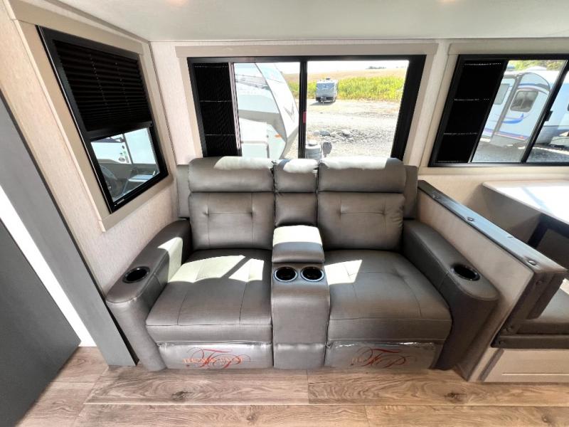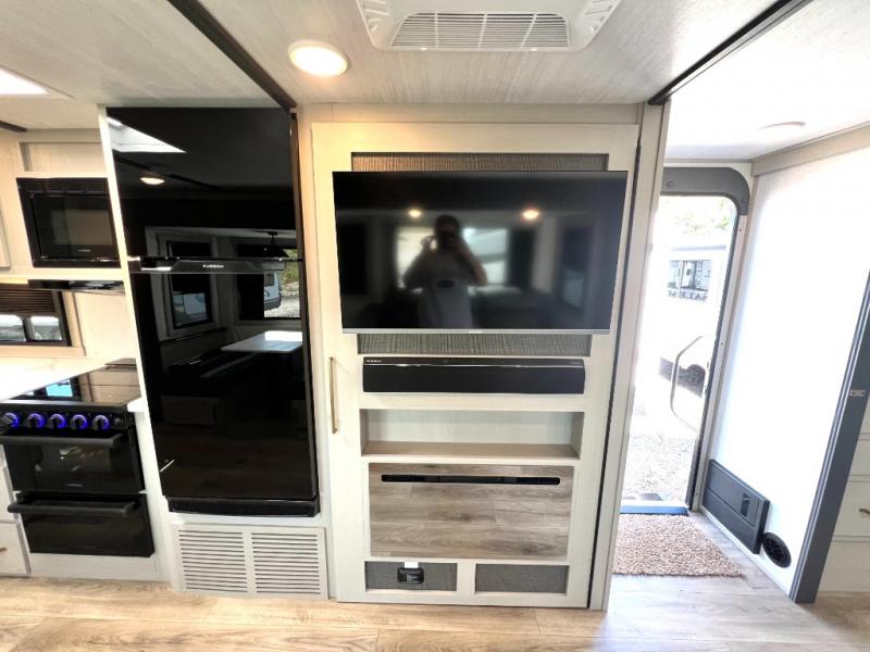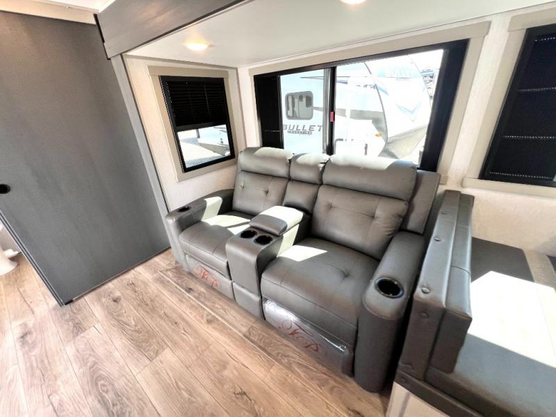 Once you step inside this spacious Salem Hemisphere Hyper-Lyte travel trailer, you'll want to take it out every other weekend for fun with your friends or family! The large slide out opens up the living and kitchen area and allows everyone to move around freely. The chef of the family can prepare dinner on the three-burner range, and they'll love having hidden storage behind the entertainment center for canned goods, snacks, and more. After a day at the lake, get cleaned up in the full rear bath before heading to the living area to relax on the theater seating while you watch a show on the 40" LED TV with a fireplace below. This trailer includes a front private bedroom with a queen bed with Versa-Tilt and space to walk around the bed. You can easily store all your hiking gear in the Texas sized pass-through storage, and cold drinks can go in the outdoor refrigerator!