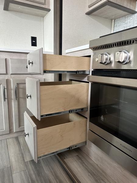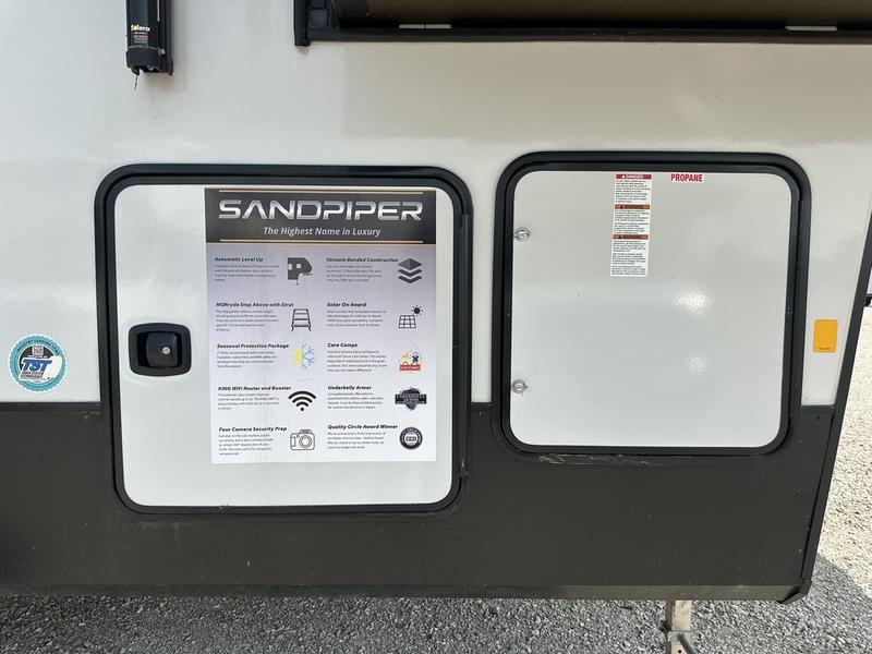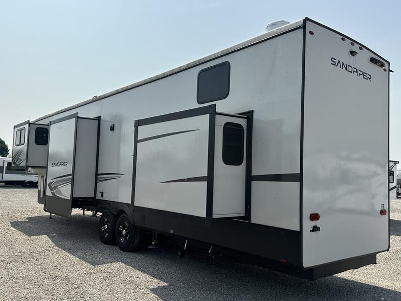 You will find the perfect balance of size, space, features, and luxury with any one of these Forest River Sandpiper fifth wheels! They are constructed with a welded aluminum framed vacuum bonded laminated superstructure, a cambered powder coated frame with rust prohibitor, and a fully enclosed underbelly to protect the units vitals during any season. The large tinted windows come with a 80/20 UV prohibitor or you can choose the optional dual pane windows. Some hassle-free amenities include a 60k BTU on-demand water heater, full coach water filter system, tire pressure monitor system, and an electric leveling system! Inside, you'll enjoy stainless steel appliances, solid surface countertops, upgraded raised panel cabinet doors, and rustic wood plank linoleum to name a few comforts!