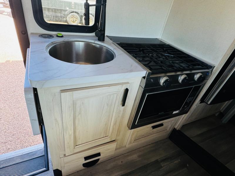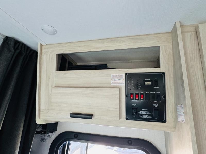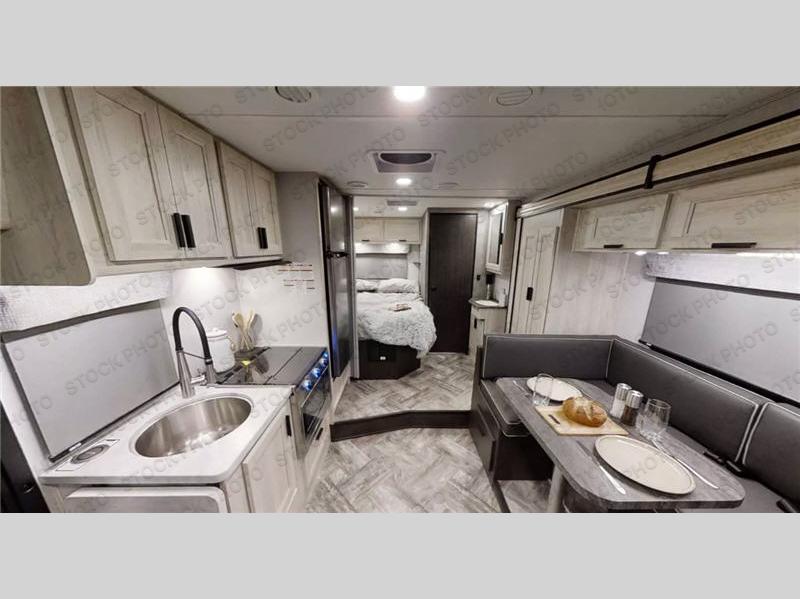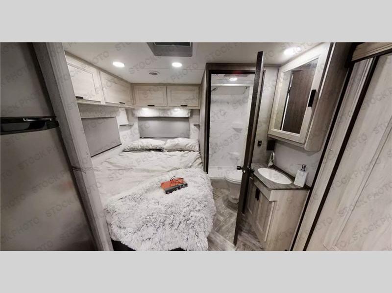 Take your family on great adventures in this Sunseeker LE Class C gas motorhome! This coach has a full kitchen equipped with a flip-up countertop, 1.3-cubic foot convection microwave, recessed three-burner range, soft-touch self-closing drawer guides, and a 10.7-cubic foot 12V refrigerator. Across from the kitchen is a U-shaped dinette that also has four seatbelts for traveling, and there are two large storage drawers in the dinette. The bathroom has an electric roof fan, an oxygen-infused shower head with flexible extension, and a shower skylight for more natural light in the morning. There is also a 12V LED TV for entertainment at night out in the main living area.