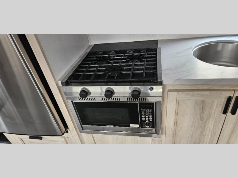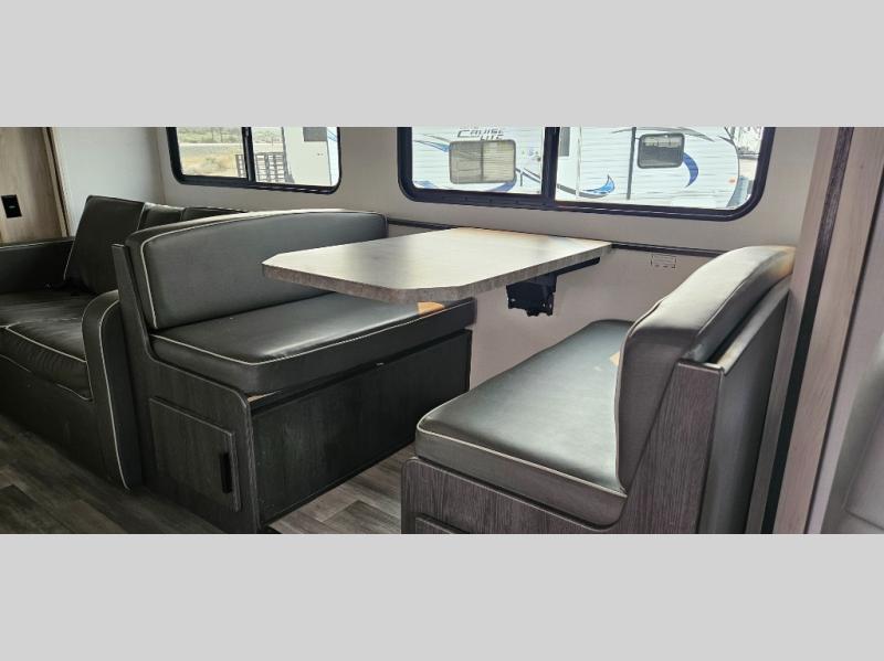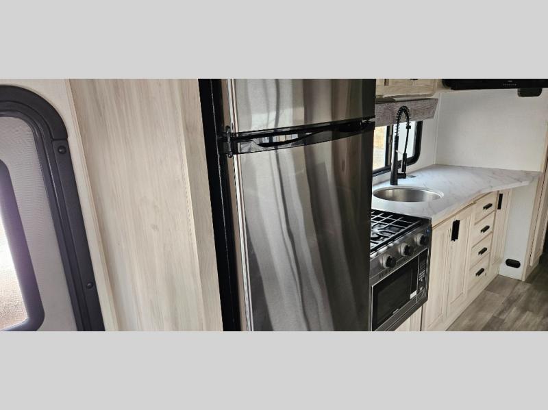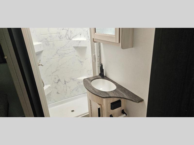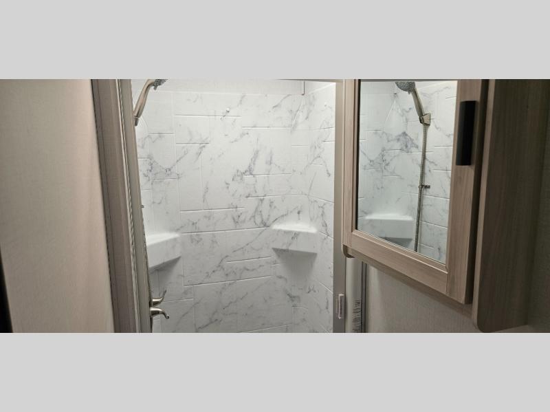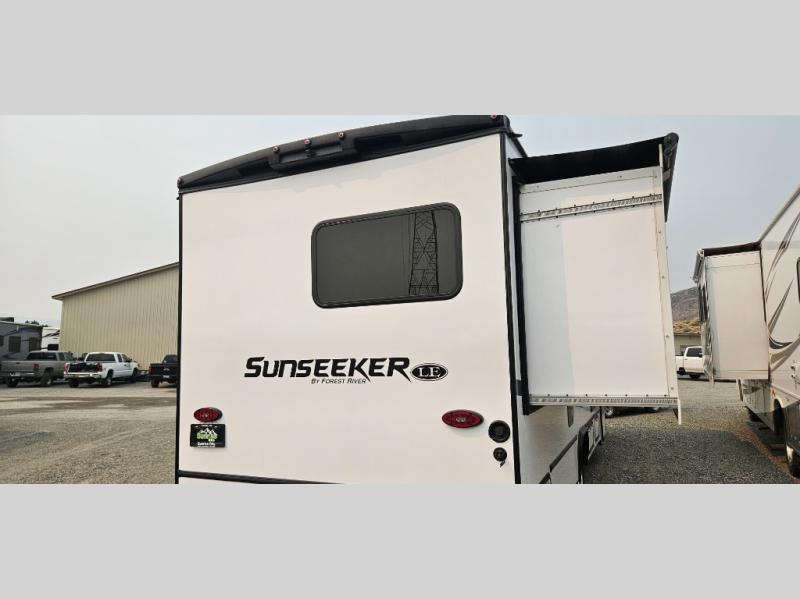 Don't make the mistake of passing up this Sunseeker LE Class C gas motorhome! There is a full bathroom with a shower skylight, oxygen-infused shower head with flexible extension, and an electric roof fan, and the bathroom is right next to the bedroom for convenience. The pantry, linen closet, wardrobe, and overhead storage offer you places to tuck away your belongings, and there are also two large storage drawers in the booth dinette as well. While you're resting on the sofa, you can watch the 12V LED TV, or you can chat with the chef who is preparing dinner on the recessed three-burner range or in the convection microwave.