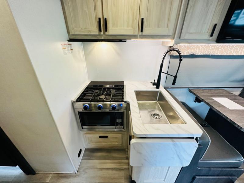 This Sunseeker LE Class C gas motorhome will allow you to travel to other states with your favorite people beside you! You can take a moment to enjoy a fresh cup of coffee in the morning while sitting at the booth dinette or on the sofa, or you can spend a little extra time creating a hearty breakfast in the kitchen on the recessed three-burner range. The 10.7-cubic foot refrigerator will store your cheese and milk, and the convection microwave will heat up leftovers with ease. The separated bathroom leads into the rear bedroom where you will find an RV queen bed with wardrobes on either side, and you can also head outside to enjoy the 18' electric awning with LED lights before bed.