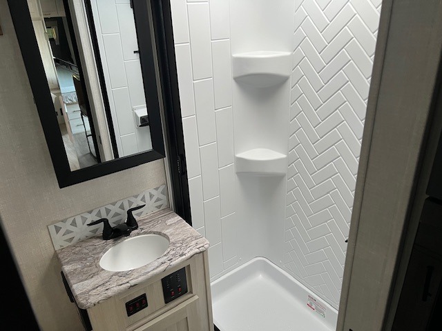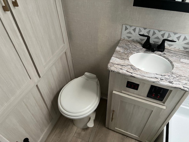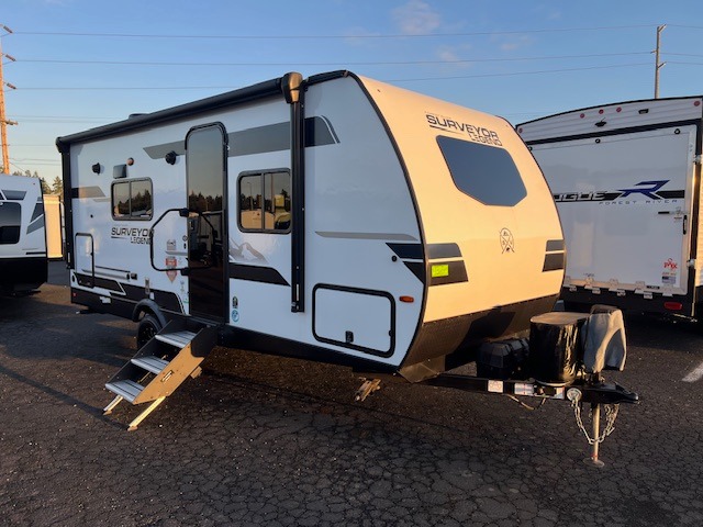 With any Surveyor Legend travel trailer by Forest River you will enjoy quality craftsmanship, convenient amenities, and at-home comforts. The Azdel composite walls provide a longer-lasting trailer, and the power tongue jack with a hitch light will get you back on the road in no-time. There are also Goodyear tires and a tire pressure monitoring system for hassle-free towing. Each model includes the Surveyor Legend Package that comes standard with oversized dinette storage access doors, front slam latch baggage doors, plus an automotive style tinted front windshield. You'll appreciate camping with a tankless water heater for endless hot showers, a 2" accessory hitch to bring bikes along, plus carpet-free interiors and a central vacuum system for easy clean up.