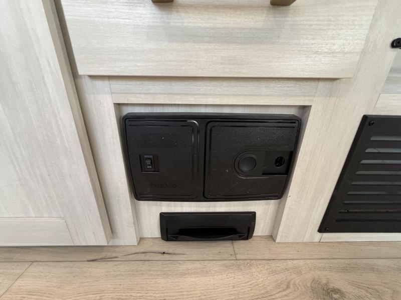 With any Surveyor Legend travel trailer by Forest River you will enjoy quality craftsmanship, convenient amenities, and at-home comforts. The Azdel composite walls provide a longer-lasting trailer, and the power tongue jack with a hitch light will get you back on the road in no-time. There are also Goodyear tires and a tire pressure monitoring system for hassle-free towing. Each model includes the Surveyor Legend Package that comes standard with oversized dinette storage access doors, front slam latch baggage doors, plus an automotive style tinted front windshield. You'll appreciate camping with a tankless water heater for endless hot showers, a 2" accessory hitch to bring bikes along, plus carpet-free interiors and a central vacuum system for easy clean up.