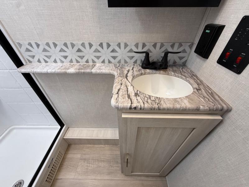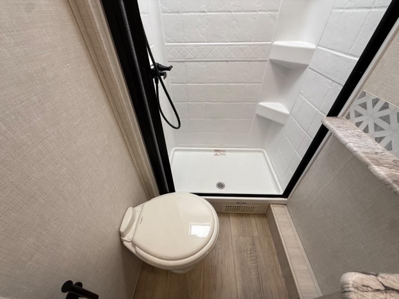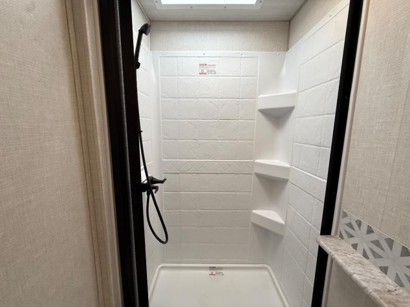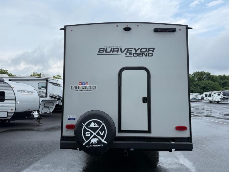 With any Surveyor Legend travel trailer by Forest River you will enjoy quality craftsmanship, convenient amenities, and at-home comforts. The Azdel composite walls provide a longer-lasting trailer, and the power tongue jack with a hitch light will get you back on the road in no-time. There are also Goodyear tires and a tire pressure monitoring system for hassle-free towing. Each model includes the Surveyor Legend Package that comes standard with oversized dinette storage access doors, front slam latch baggage doors, plus an automotive style tinted front windshield. You'll appreciate camping with a tankless water heater for endless hot showers, a 2" accessory hitch to bring bikes along, plus carpet-free interiors and a central vacuum system for easy clean up.
