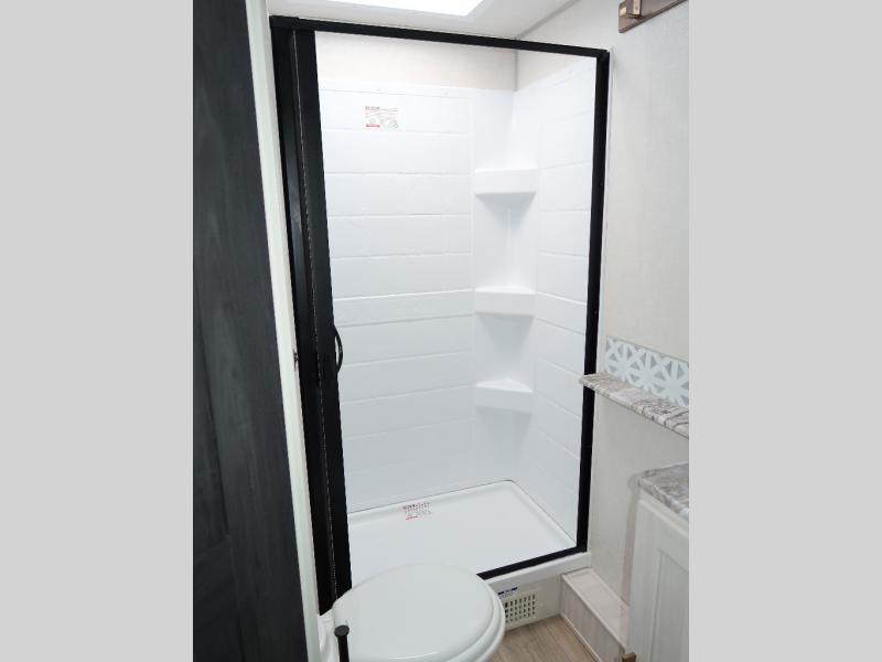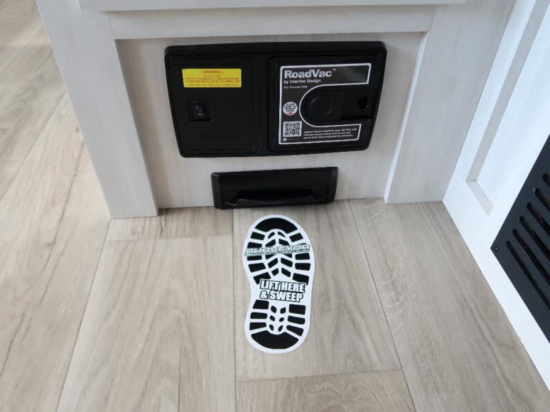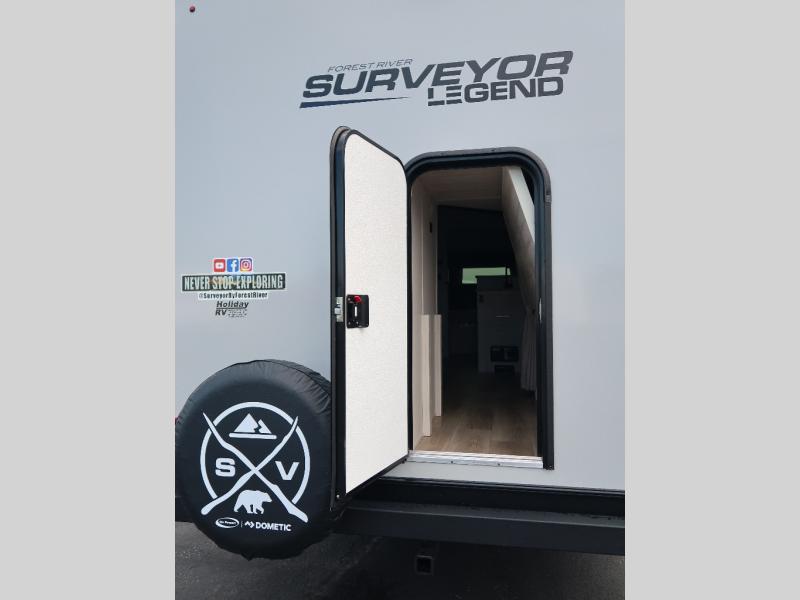 With any Surveyor Legend travel trailer by Forest River you will enjoy quality craftsmanship, convenient amenities, and at-home comforts. The Azdel composite walls provide a longer-lasting trailer, and the power tongue jack with a hitch light will get you back on the road in no-time. There are also Goodyear tires and a tire pressure monitoring system for hassle-free towing. Each model includes the Surveyor Legend Package that comes standard with oversized dinette storage access doors, front slam latch baggage doors, plus an automotive style tinted front windshield. You'll appreciate camping with a tankless water heater for endless hot showers, a 2" accessory hitch to bring bikes along, plus carpet-free interiors and a central vacuum system for easy clean up.