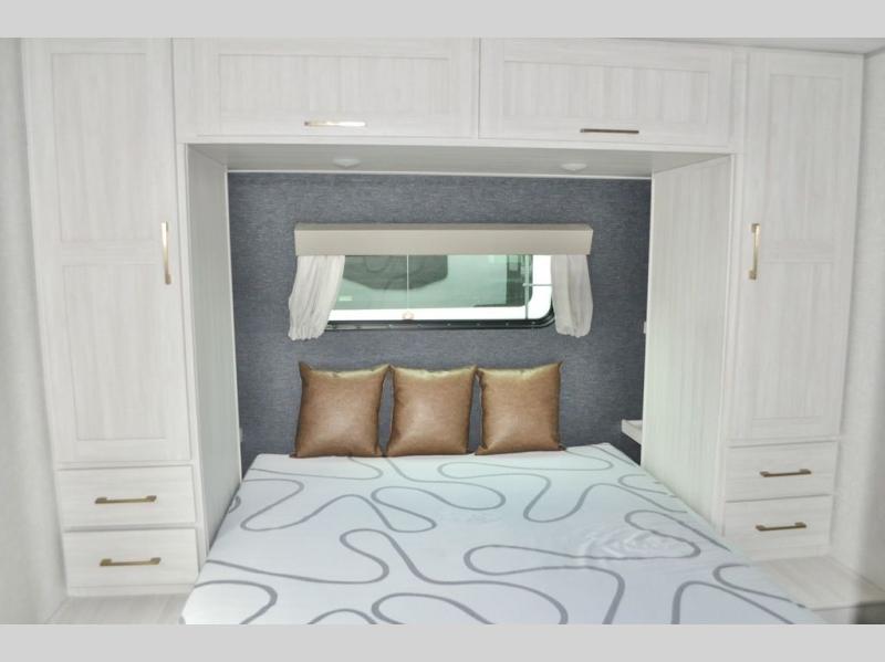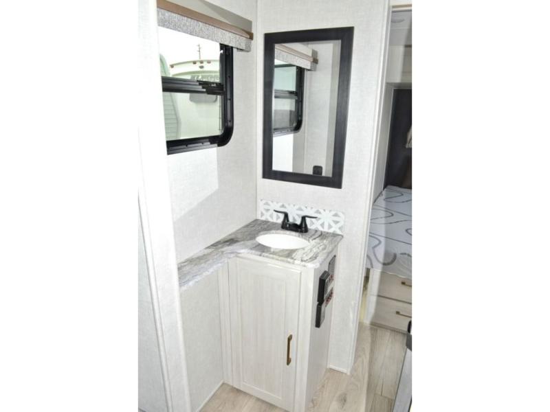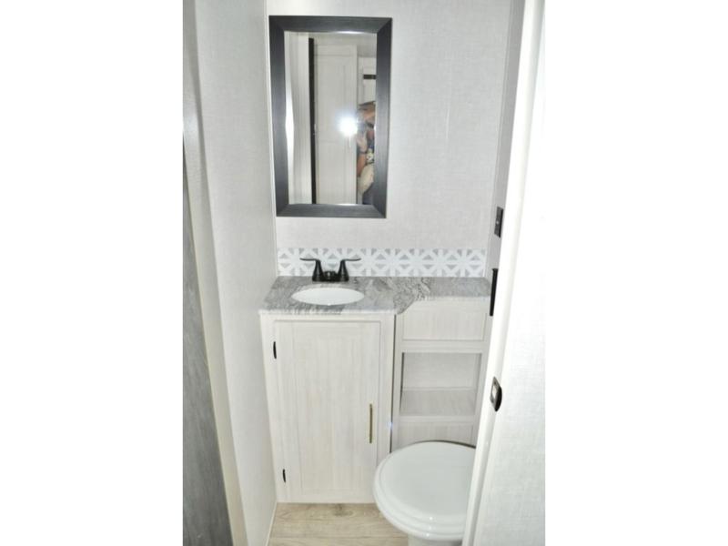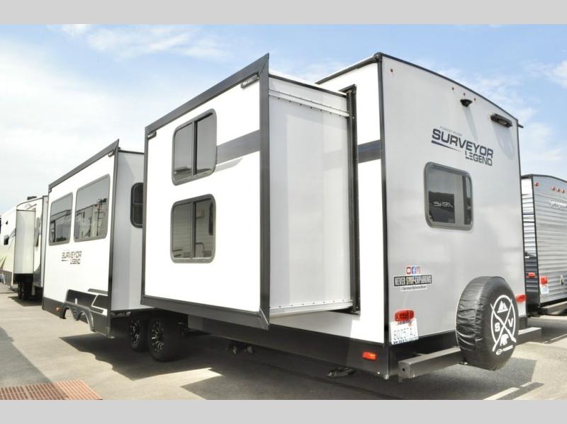 With any Surveyor Legend travel trailer by Forest River you will enjoy quality craftsmanship, convenient amenities, and at-home comforts. The Azdel composite walls provide a longer-lasting trailer, and the power tongue jack with a hitch light will get you back on the road in no-time. There are also Goodyear tires and a tire pressure monitoring system for hassle-free towing. Each model includes the Surveyor Legend Package that comes standard with oversized dinette storage access doors, front slam latch baggage doors, plus an automotive style tinted front windshield. You'll appreciate camping with a tankless water heater for endless hot showers, a 2" accessory hitch to bring bikes along, plus carpet-free interiors and a central vacuum system for easy clean up.
