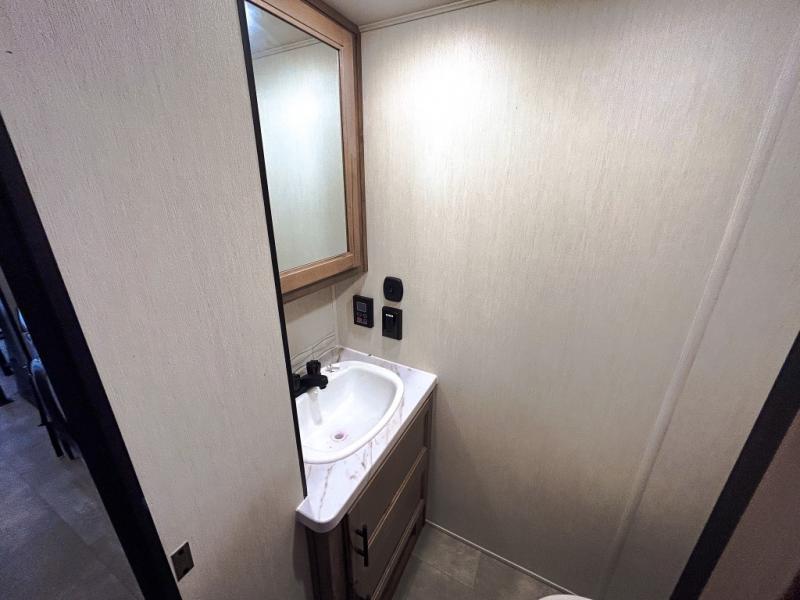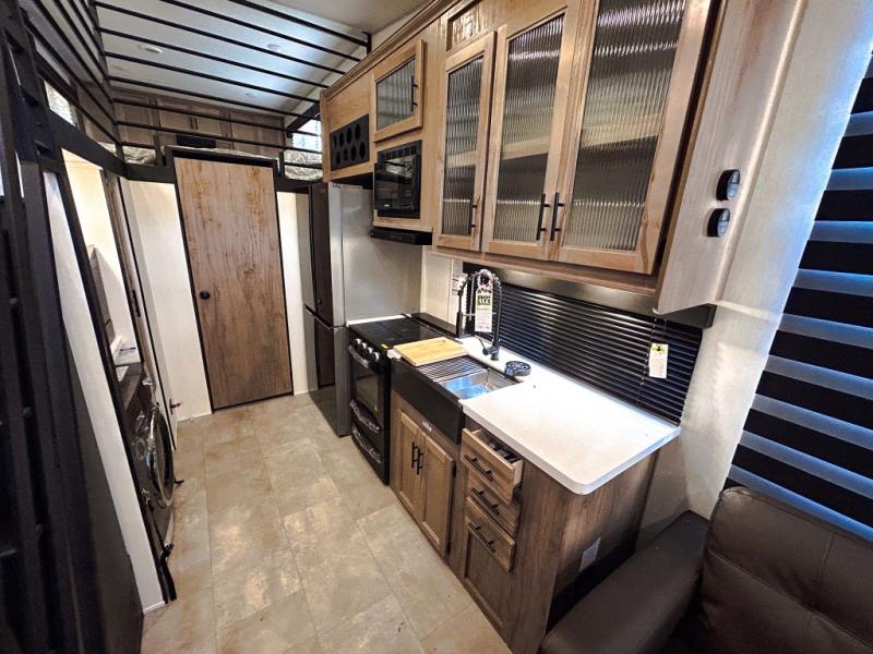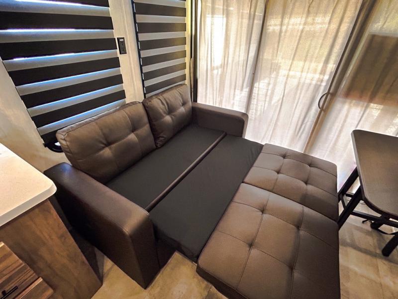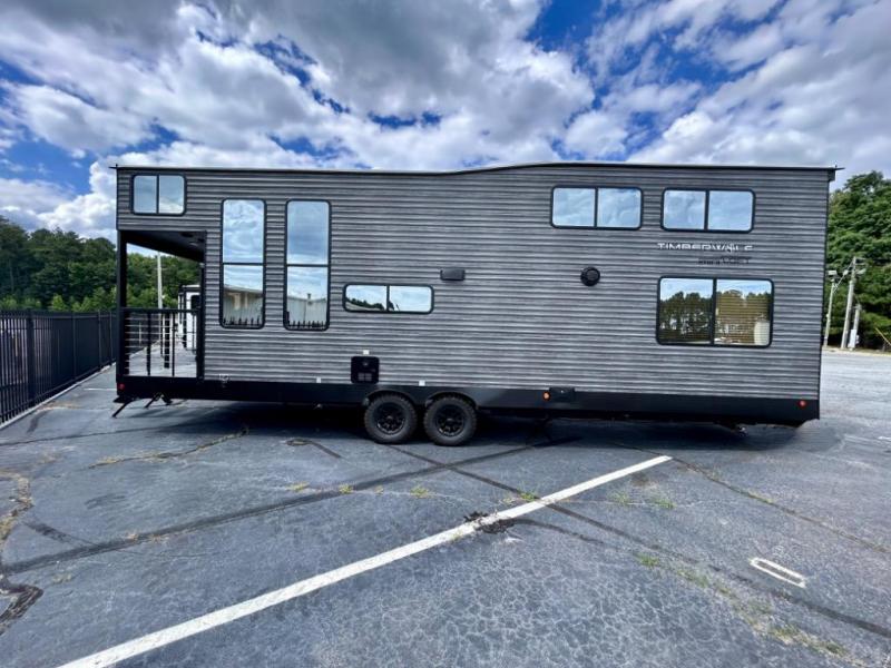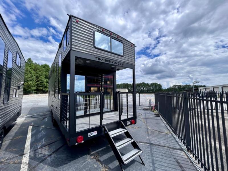 Enjoy comforts of home wherever you decide to roam in a Timberwolf destination trailer by Forest River. The seamless roofing membrane with heat reflectivity and power gear frame technology provide a durable foundation to your RV. You will also appreciate the exclusive solar thermo controlled reflective tinted safety glass windows, tire pressure monitors, and an on-demand tankless water heater to make extended stays easier than ever. Inside, the night shades will provide your crew with privacy, while the LED lights illuminate your space. There are also seamless countertops, along with a premium bedding ensemble and comforter, USB charging stations, a supersized central A/C unit, and many more comforts!