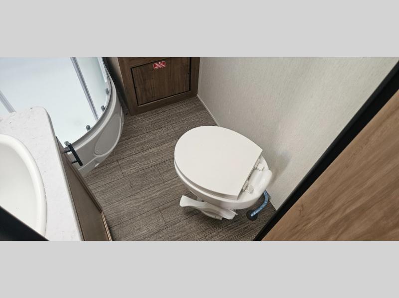 With any Vengeance Rouge SUT toy hauler travel trailer or fifth wheel by Forest River you can bring along your favorite ride-on toys, while still enjoying at-home comforts. Each one is built with a seamless roofing membrane with heat reflectivity and an armored underbelly tank enclosure for added strength and durability, and the 8' 6" wide body construction means you can bring along your favorite ride-on toys. Inside, you'll find a 1000 watt microwave and a three burner cooktop with an oven, seamless countertops, plus zebra shades that filters light and are blackout capable. These toy haulers also include 12V heat pads on all the holding tanks, a 15,000 BTU A/C unit, and many more amenities to make camping easier than ever.