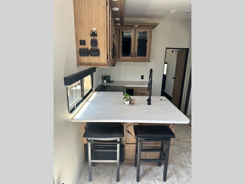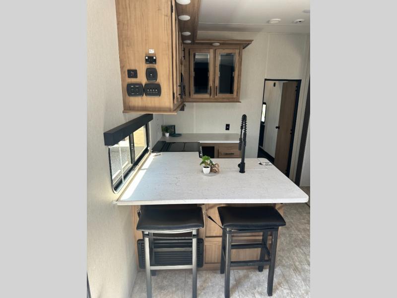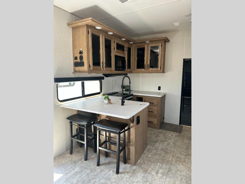 With any Vengeance Rouge SUT toy hauler travel trailer or fifth wheel by Forest River you can bring along your favorite ride-on toys, while still enjoying at-home comforts. Each one is built with a seamless roofing membrane with heat reflectivity and an armored underbelly tank enclosure for added strength and durability, and the 8' 6" wide body construction means you can bring along your favorite ride-on toys. Inside, you'll find a 1000 watt microwave and a three burner cooktop with an oven, seamless countertops, plus zebra shades that filters light and are blackout capable. These toy haulers also include 12V heat pads on all the holding tanks, a 15,000 BTU A/C unit, and many more amenities to make camping easier than ever.