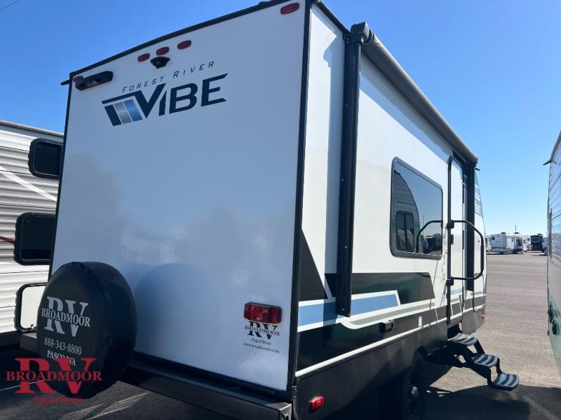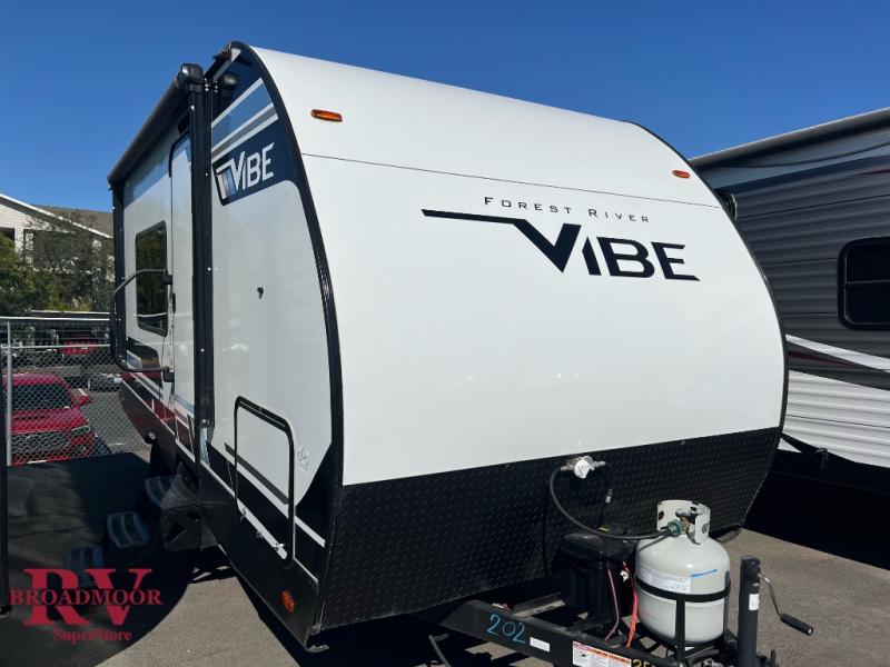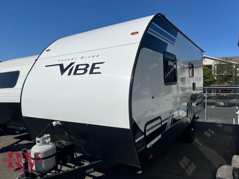 Each Vibe travel trailer by Forest River includes Hyper Lyte construction and a durable laminated "Aluma Frame" for years of use. The heated and enclosed underbelly allows you to extend your camping season, and the walk-on truss roof with XTRM PVC roofing will be easy to keep clean. Inside, you'll enjoy best-in-class panoramic windows, a 12V oversized refrigerator, plus screwed and glued cabinets with residential steel ball bearing drawer guides on all drawers. These models also include cable and satellite prep and a digital TV antenna with a booster so you can stay connected to the outside world if you choose. Make the easy choice and choose a Vibe travel trailer today!