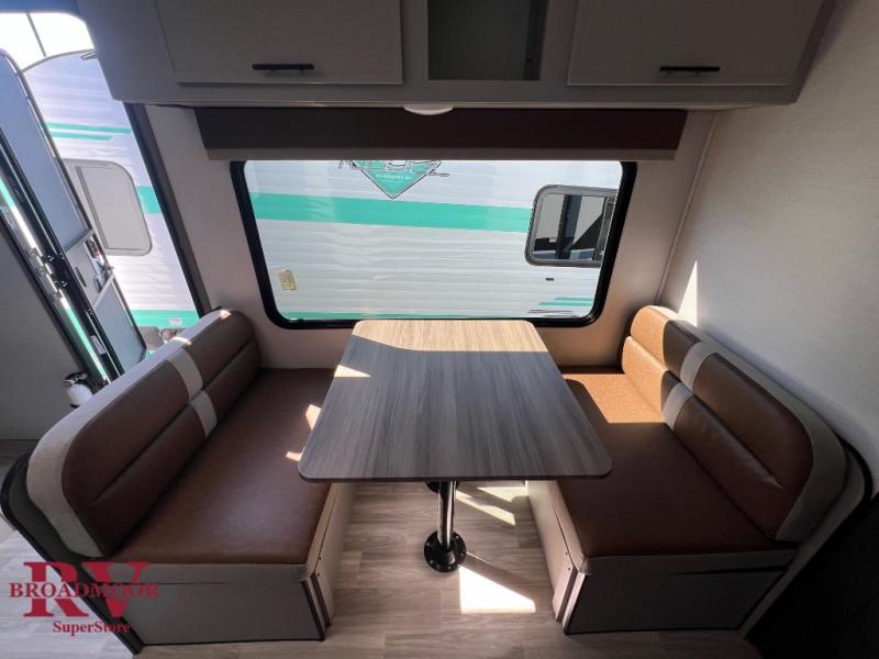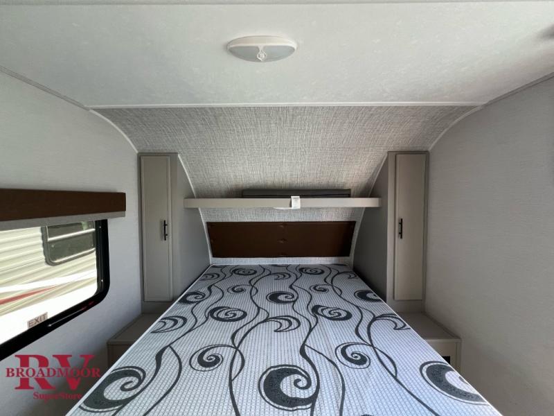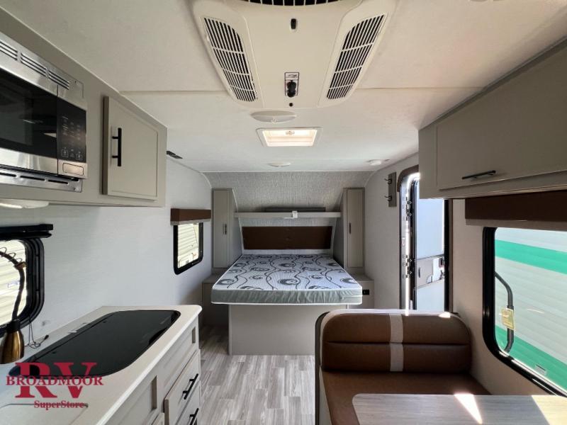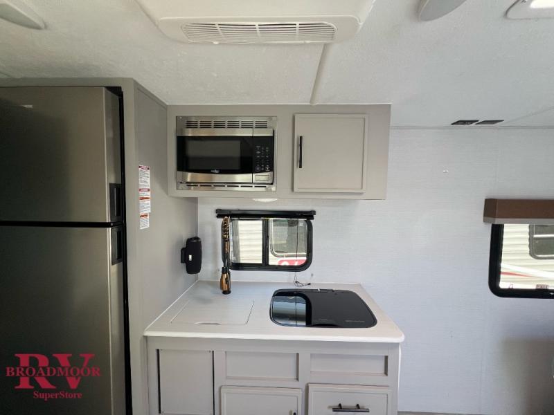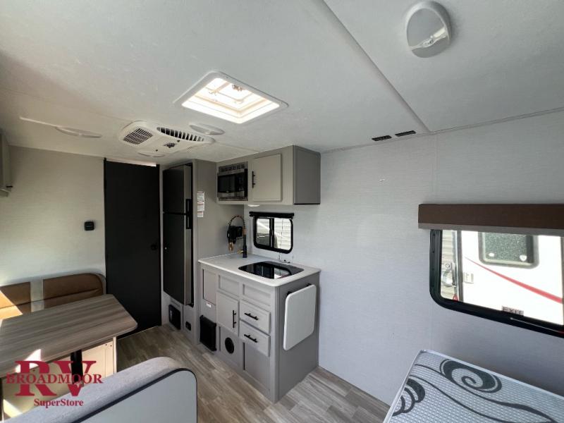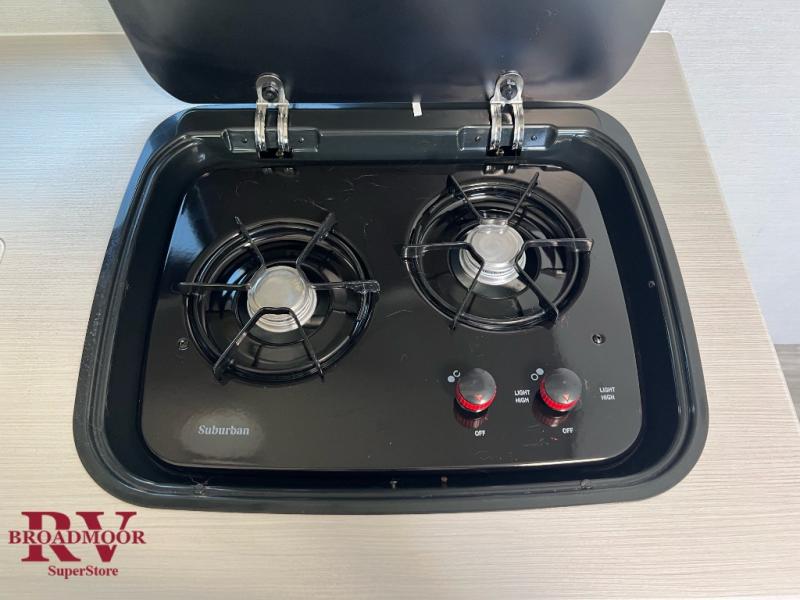 This lightweight single axle travel trailer is perfect for the couple looking to get away on weekend trips to the lake. You will enjoy a queen bed just like at home, and dual wardrobes for your clothes. If you have an overnight guest or two small children, they can sleep on the booth dinette comfortably. There is a recessed two burner cooktop with a glass cover to cook meals on, plus a microwave oven when you're on-the-go. And don't miss the full rear bath that will allow you to clean up each day without having to use the camp's facilities!