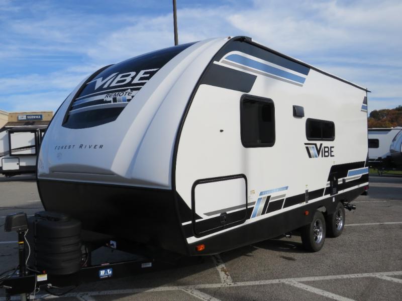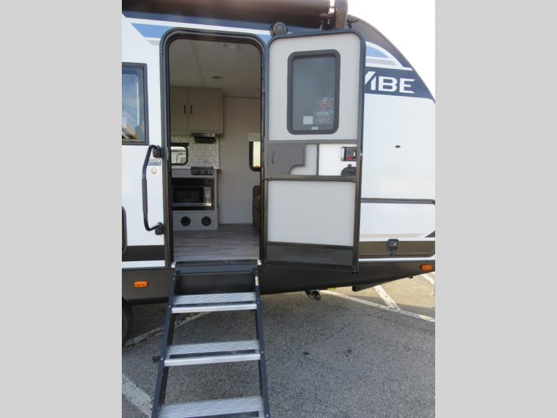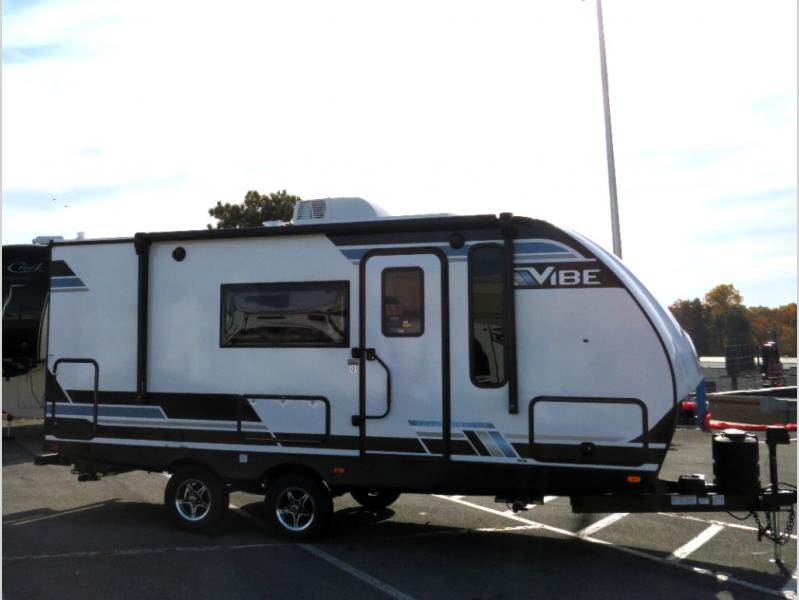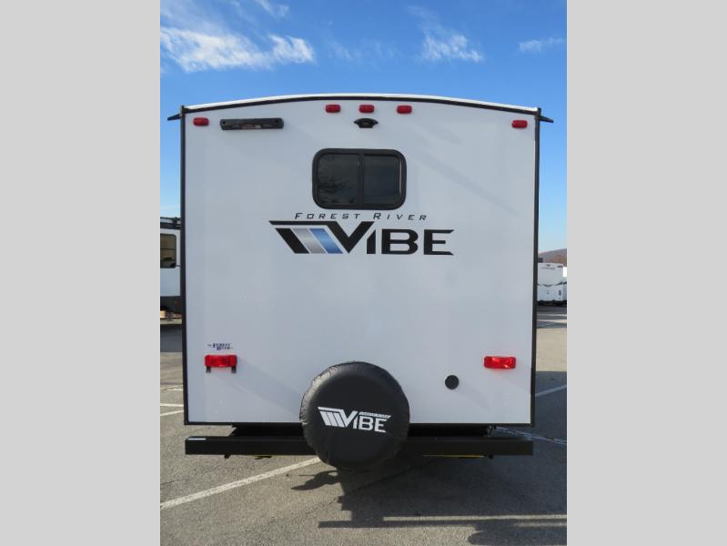 Each Vibe travel trailer by Forest River includes Hyper Lyte construction and a durable laminated "Aluma Frame" for years of use. You will also find an outside shower, a 200-watt roof mounted solar panel, and heated tank pads that will help extend your camping season. The Reserve Package has many at-home features you are sure to enjoy, like the decorative window treatments, solid surface countertops, new black chef's appliance package with an air fryer, and more! These models also include cable and satellite prep and a digital TV antenna with a booster so you can stay connected to the outside world if you choose. Make the easy choice and choose a Vibe travel trailer today!