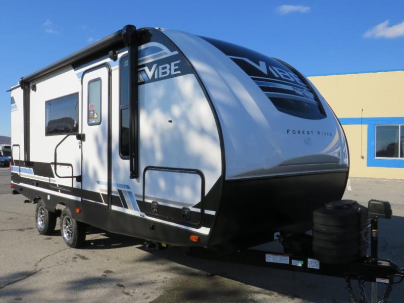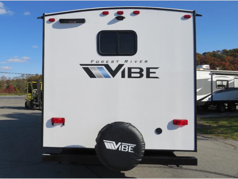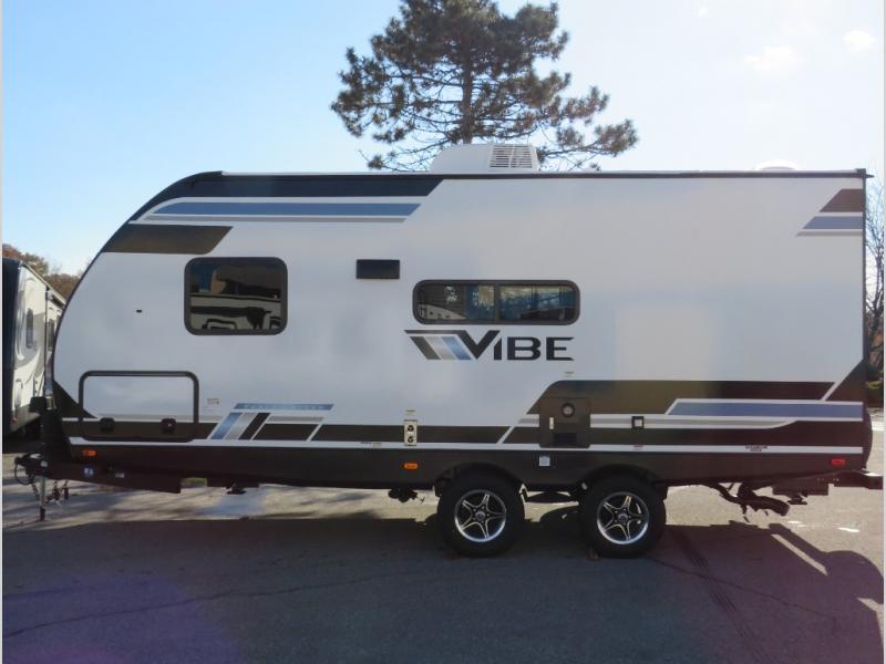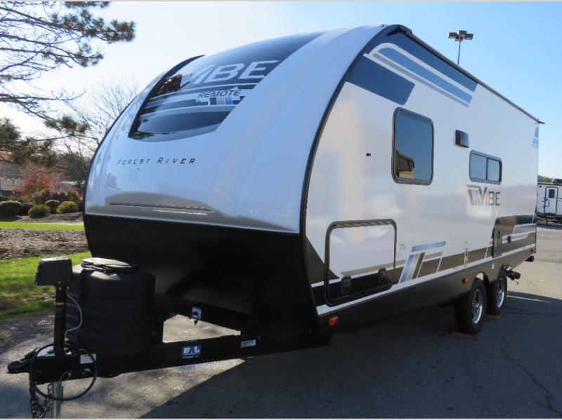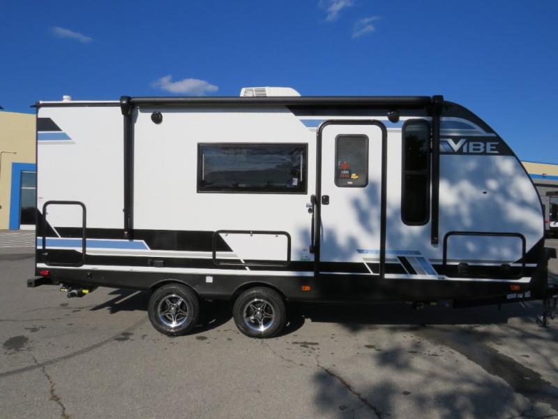 Each Vibe travel trailer by Forest River includes Hyper Lyte construction and a durable laminated "Aluma Frame" for years of use. You will also find an outside shower, a 200-watt roof mounted solar panel, and heated tank pads that will help extend your camping season. The Reserve Package has many at-home features you are sure to enjoy, like the decorative window treatments, solid surface countertops, new black chef's appliance package with an air fryer, and more! These models also include cable and satellite prep and a digital TV antenna with a booster so you can stay connected to the outside world if you choose. Make the easy choice and choose a Vibe travel trailer today!