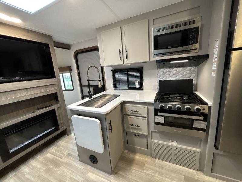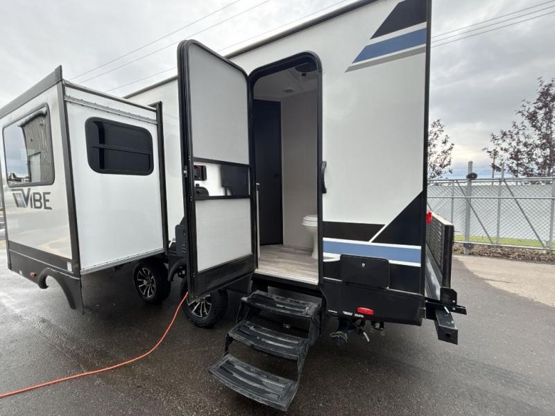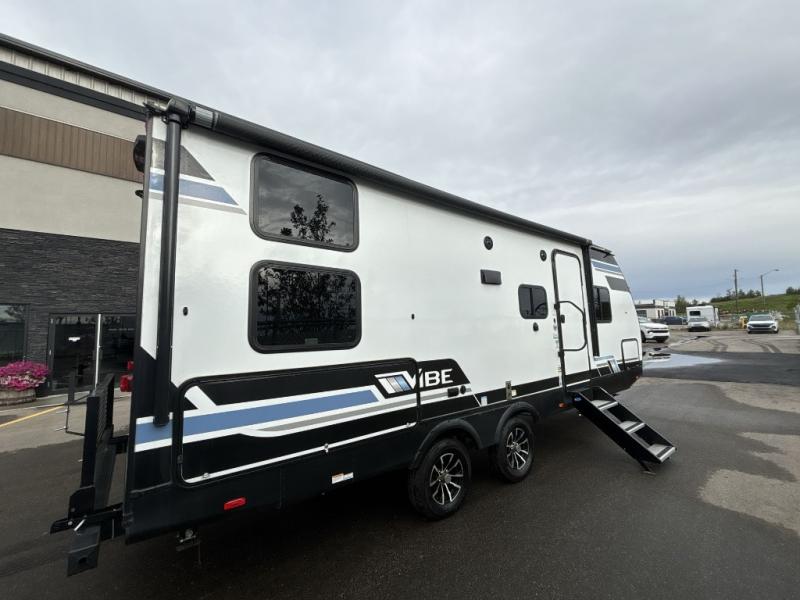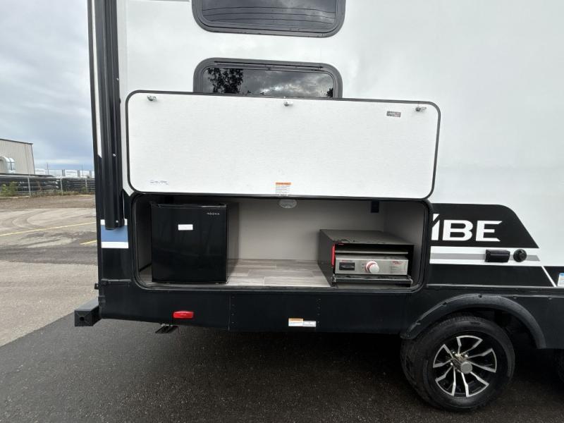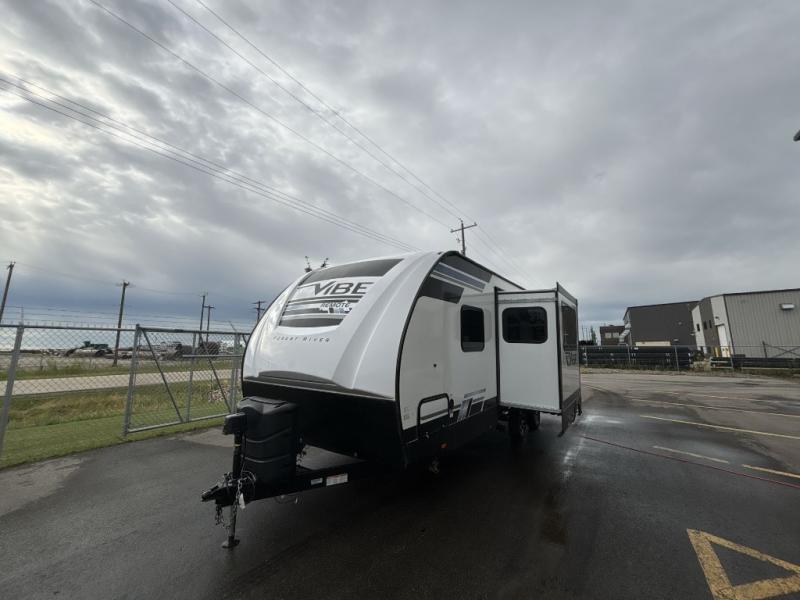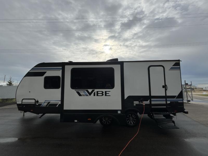 Each Vibe travel trailer by Forest River includes Hyper Lyte construction and a durable laminated "Aluma Frame" for years of use. The heated and enclosed underbelly allows you to extend your camping season, and the walk-on truss roof with XTRM PVC roofing will be easy to keep clean. Inside, you'll enjoy best-in-class panoramic windows, a 12V oversized refrigerator, plus screwed and glued cabinets with residential steel ball bearing drawer guides on all drawers. These models also include cable and satellite prep and a digital TV antenna with a booster so you can stay connected to the outside world if you choose. Make the easy choice and choose a Vibe travel trailer today!