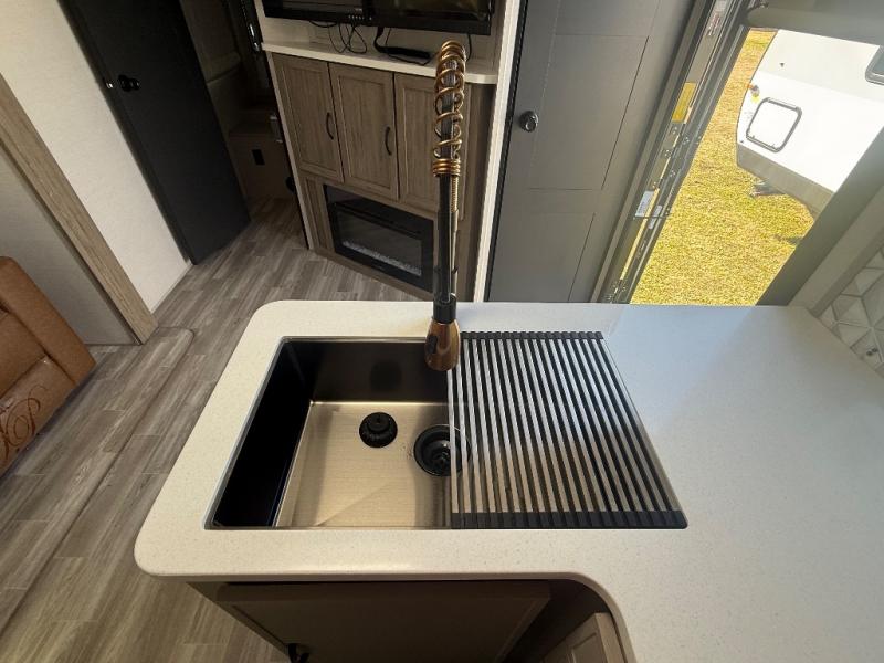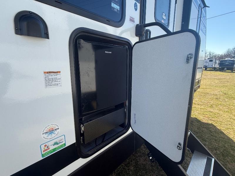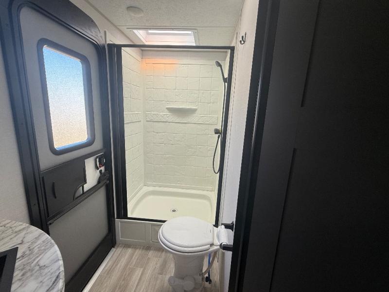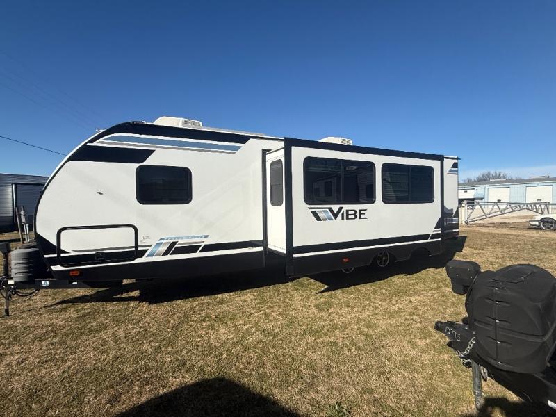 Each Vibe travel trailer by Forest River includes Hyper Lyte construction and a durable laminated "Aluma Frame" for years of use. You will also find an outside shower, a 200-watt roof mounted solar panel, and heated tank pads that will help extend your camping season. The Reserve Package has many at-home features you are sure to enjoy, like the decorative window treatments, solid surface countertops, new black chef's appliance package with an air fryer, and more! These models also include cable and satellite prep and a digital TV antenna with a booster so you can stay connected to the outside world if you choose. Make the easy choice and choose a Vibe travel trailer today!