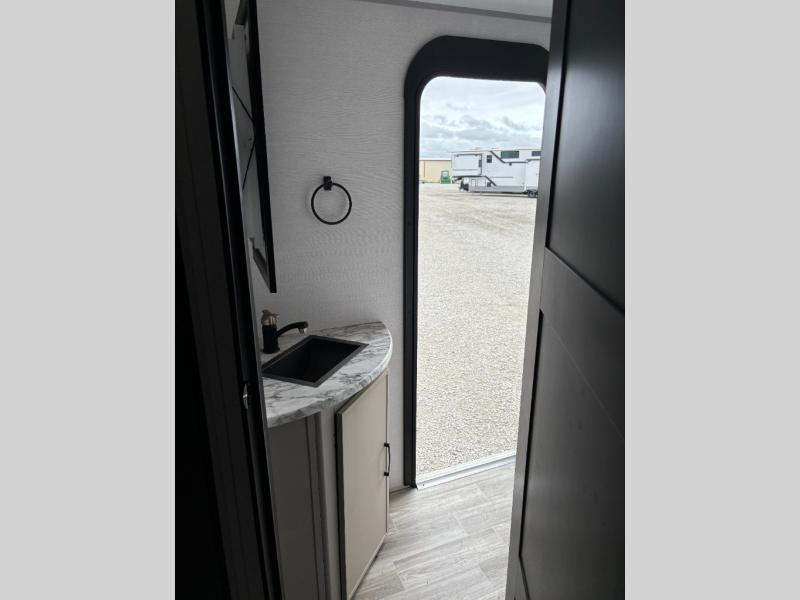 Each Vibe travel trailer by Forest River includes Hyper Lyte construction and a durable laminated "Aluma Frame" for years of use. You will also find an outside shower, a 200-watt roof mounted solar panel, and heated tank pads that will help extend your camping season. The Reserve Package has many at-home features you are sure to enjoy, like the decorative window treatments, solid surface countertops, new black chef's appliance package with an air fryer, and more! These models also include cable and satellite prep and a digital TV antenna with a booster so you can stay connected to the outside world if you choose. Make the easy choice and choose a Vibe travel trailer today!