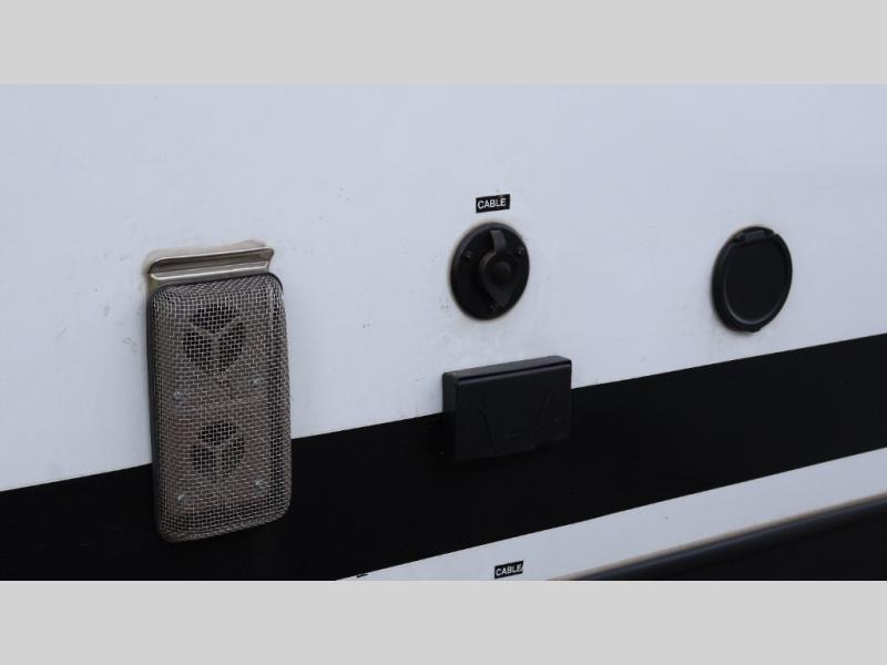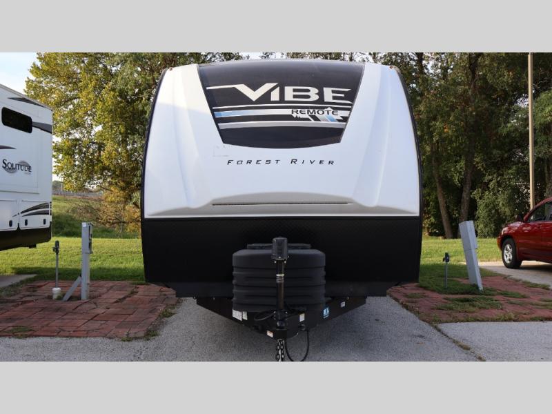 Each Vibe travel trailer by Forest River includes Hyper Lyte construction and a durable laminated "Aluma Frame" for years of use. You will also find an outside shower, a 200-watt roof mounted solar panel, and heated tank pads that will help extend your camping season. The Reserve Package has many at-home features you are sure to enjoy, like the decorative window treatments, solid surface countertops, new black chef's appliance package with an air fryer, and more! These models also include cable and satellite prep and a digital TV antenna with a booster so you can stay connected to the outside world if you choose. Make the easy choice and choose a Vibe travel trailer today!