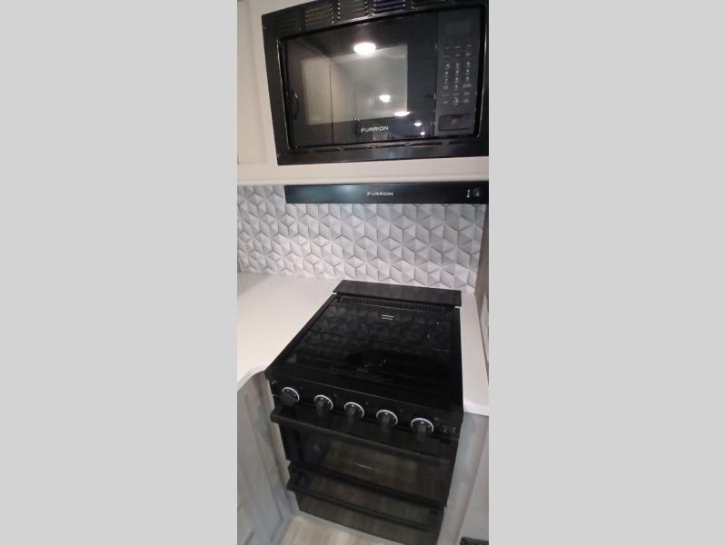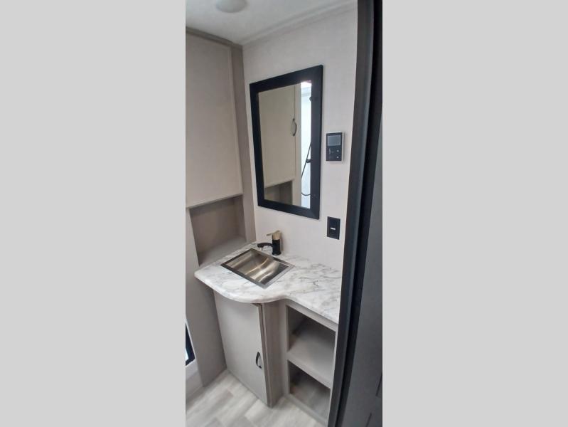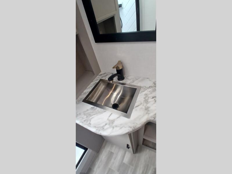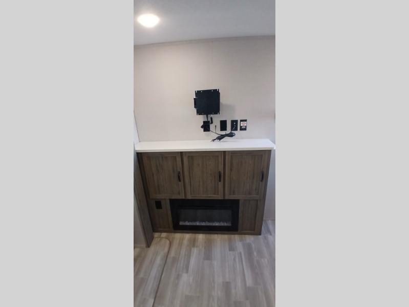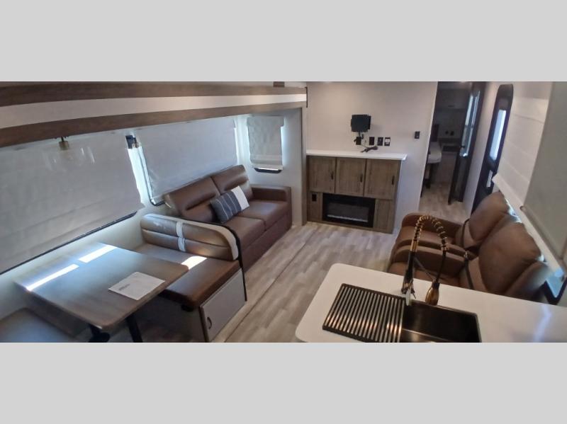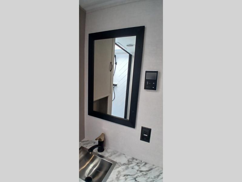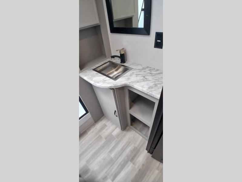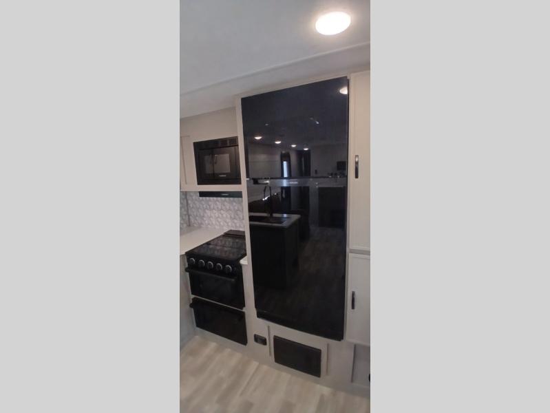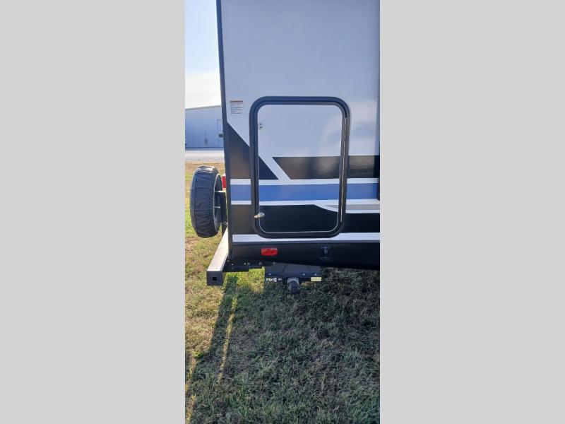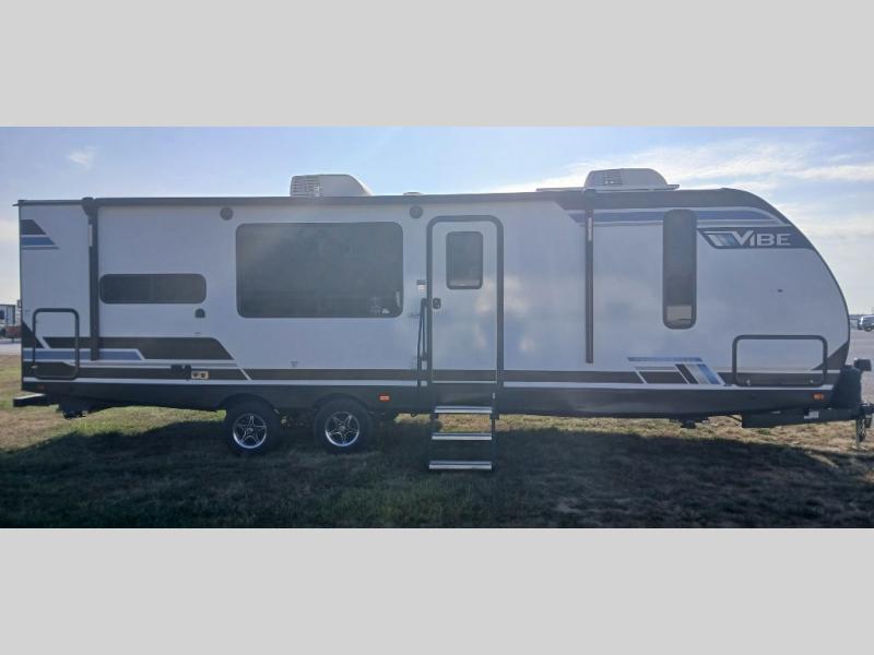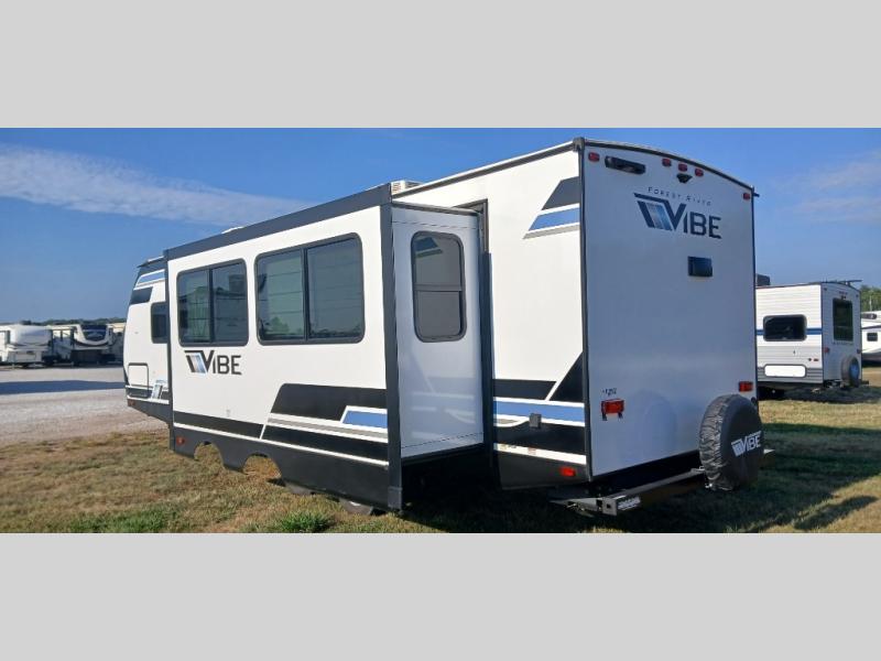 Each Vibe travel trailer by Forest River includes Hyper Lyte construction and a durable laminated "Aluma Frame" for years of use. You will also find an outside shower, a 200-watt roof mounted solar panel, and heated tank pads that will help extend your camping season. The Reserve Package has many at-home features you are sure to enjoy, like the decorative window treatments, solid surface countertops, new black chef's appliance package with an air fryer, and more! These models also include cable and satellite prep and a digital TV antenna with a booster so you can stay connected to the outside world if you choose. Make the easy choice and choose a Vibe travel trailer today!