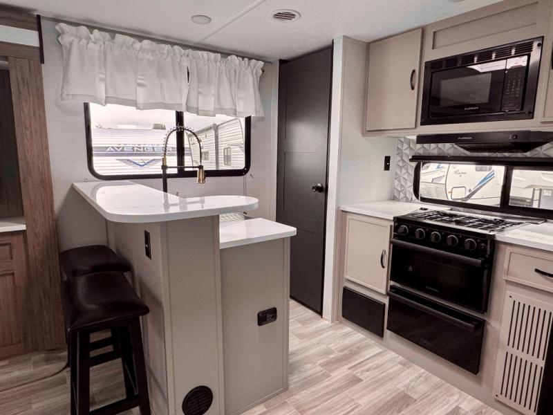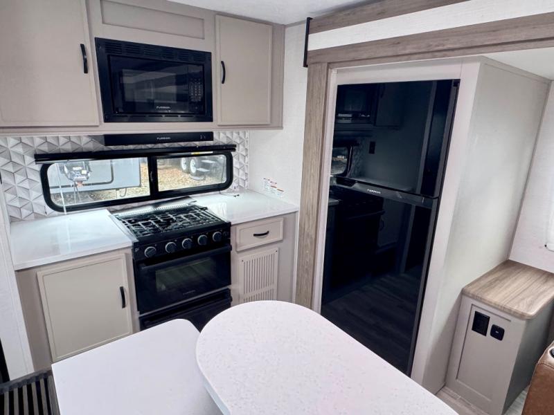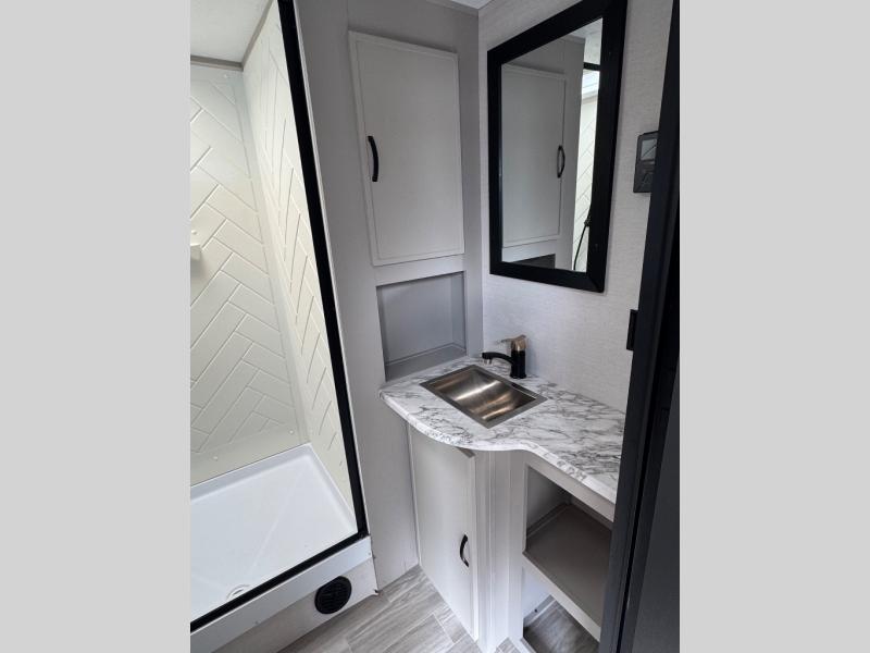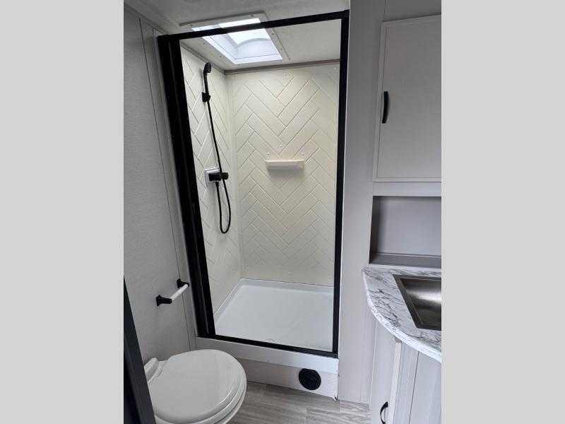 Each Vibe travel trailer by Forest River includes Hyper Lyte construction and a durable laminated "Aluma Frame" for years of use. You will also find an outside shower, a 200-watt roof mounted solar panel, and heated tank pads that will help extend your camping season. The Reserve Package has many at-home features you are sure to enjoy, like the decorative window treatments, solid surface countertops, new black chef's appliance package with an air fryer, and more! These models also include cable and satellite prep and a digital TV antenna with a booster so you can stay connected to the outside world if you choose. Make the easy choice and choose a Vibe travel trailer today!