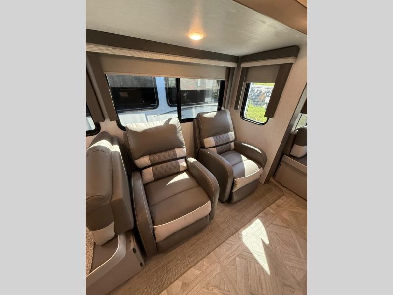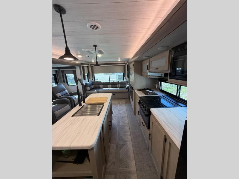 Enjoy years and years of memories with any one of these Forest River Wildwood travel trailers! They are built with a Dicor PVC roof membrane, a powder coated I-beam frame, and an aerodynamic front radius profile for an easier tow. The triple seal slide out system prevents water from seeping inside and keeps it outside where it belongs. The Best In Class Value Package includes upgraded designer furniture, seamless countertops with no T-mold, and two zone residential soundbars with FM, Bluetooth, HDMI and USB. You will also appreciate the heated and enclosed Accessi-Belly with removable underbelly panels, the power tongue jack with an LED light, and the designated CPAP storage. Some new upgraded features include: an upgraded slide-out fascia, a Versa-Tilt bed, an upgraded shower head, and a 60K BTU tankless water heater, and so much more!
