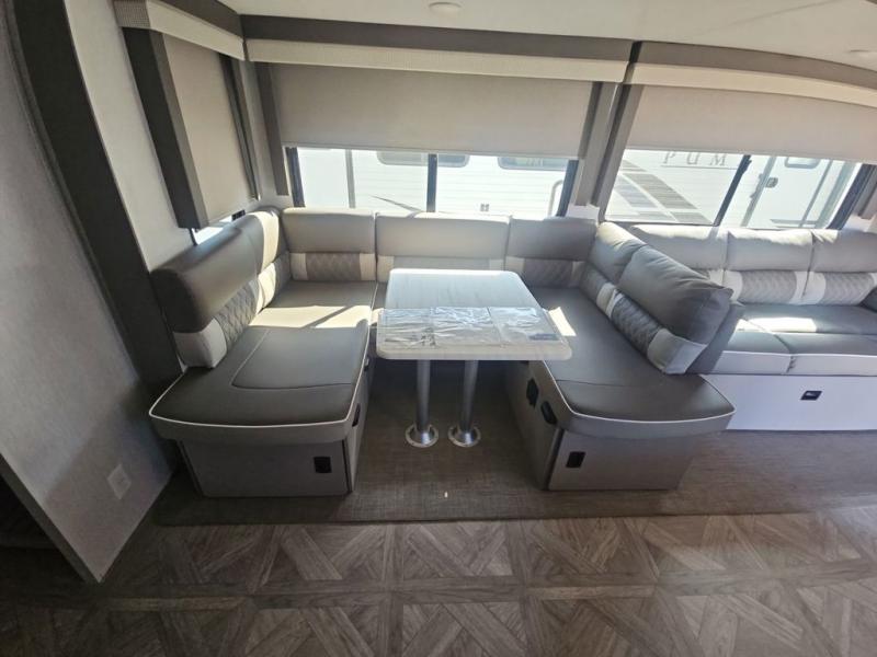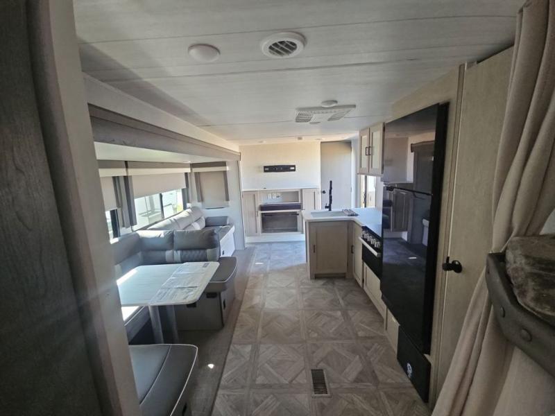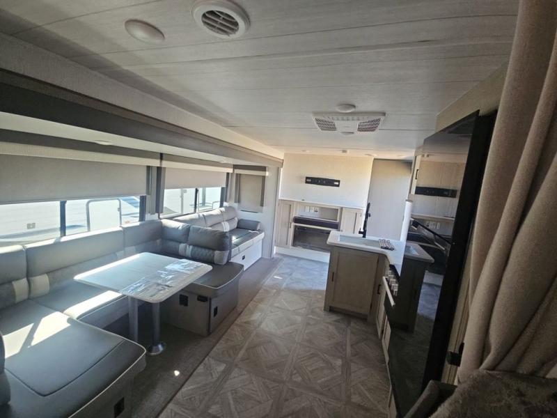 Hurry back to the campsite with this Wildwood travel trailer! With plenty of conveniences all throughout, this model gives you room and amenities to sleep ten people comfortably. You can choose from the custom king bed with Versa Tilt up front in the private bedroom, the set of double-size bunks in the back, or the U-shaped dinette and Versa-Lounge in the main living area. Plus, cooking for everyone will be a breeze in the fully-equipped kitchen or optional exterior kitchen!