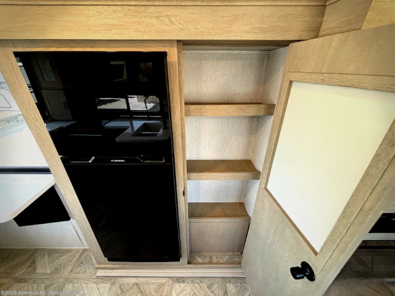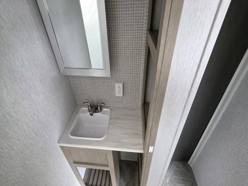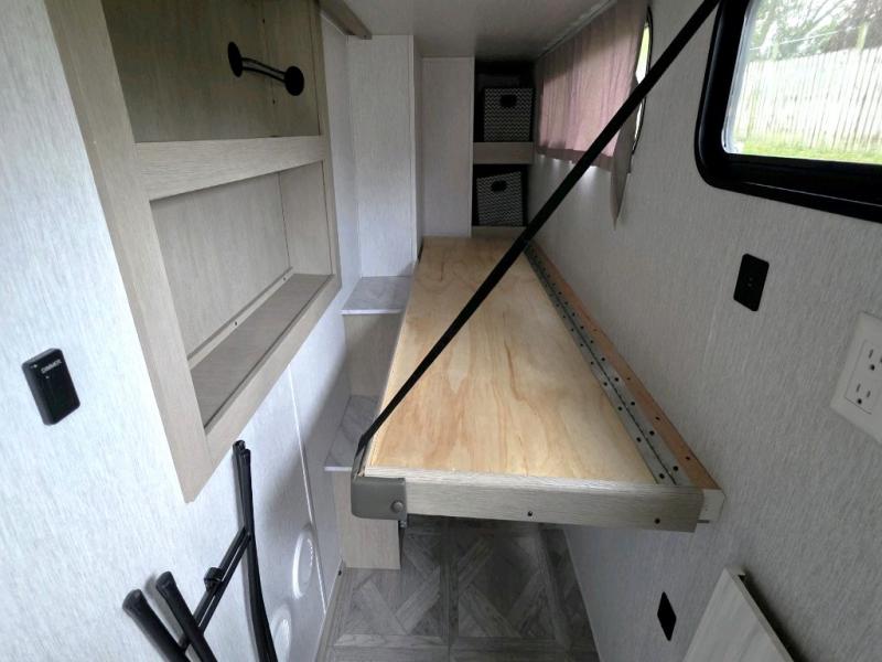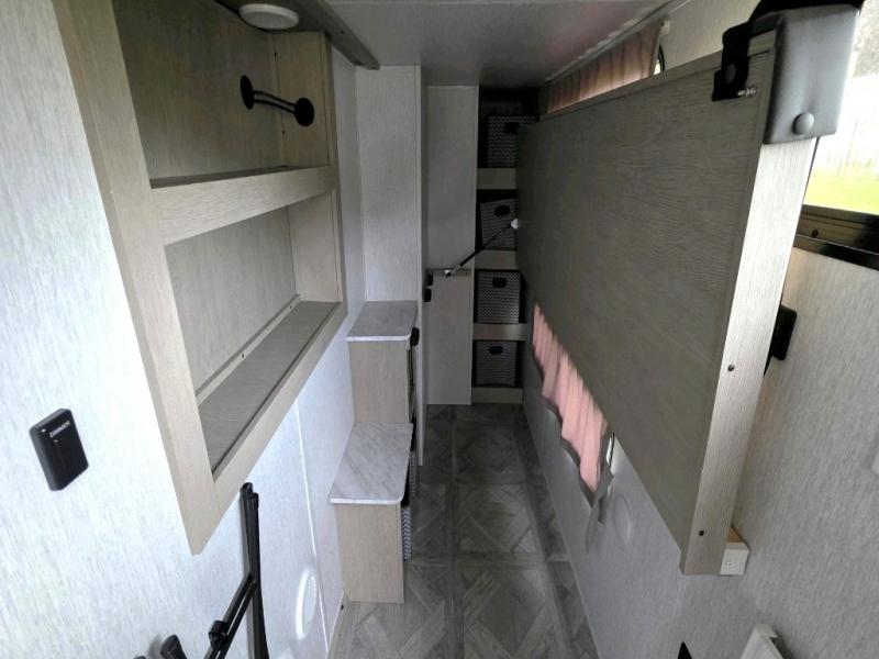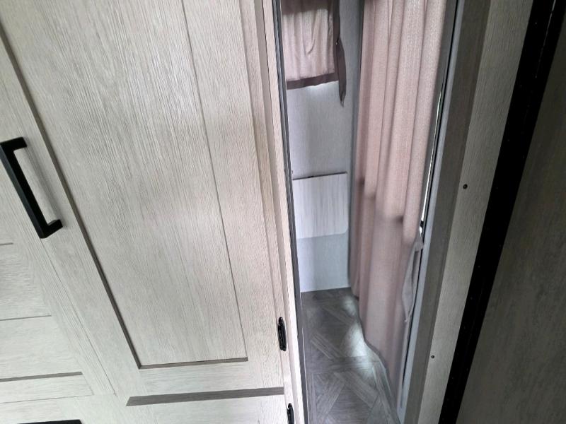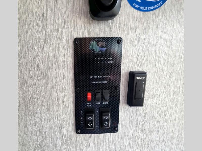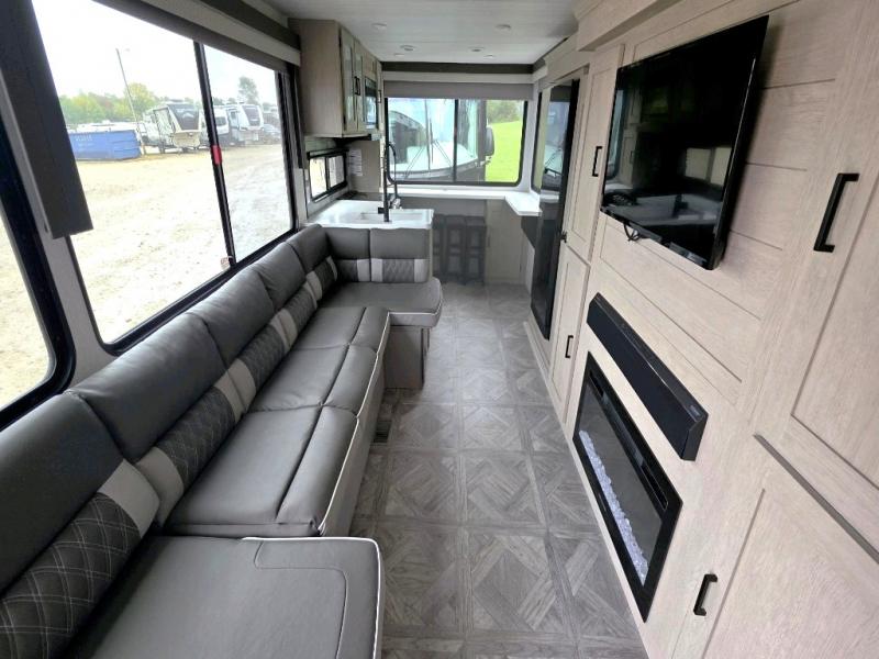 Your family of four or will enjoy this Wildwood View bunk model featuring 105 square feet of window space for unbelievable views of your surroundings. The Versa Slide features a refrigerator, pantry, and entertainment center with a door leading to a bunk space including a 30" x 70" flip-up bunk with a mattress pad below, storage cubbies for your things, and a desk with bar stool for any office work that you may need to do while you travel. All is neatly tucked away within the slide behind an entertainment wall with fireplace opposite the sectional sofa which is great for relaxing and entertaining family and friends indoors. The rear kitchen area offers 18 linear feet of countertop space with four bar stools, plus a three burner range and double sink. Your refrigerator and pantry will hold all of your perishables and dry goods, and those are nearby within the Versa slide. Up front, a private bedroom with Versa-Tilt custom king bed which provides 14-1/2" of additional walking around space, plus you will find a wardrobe that has been prepped for a washer and dryer if you choose to add, as well as dual nightstands beneath wardrobes on either side of the bed. A large pass-through storage compartment offers plenty of storage for your outdoor gear, and if you enjoy outdoor cooking, you might want to add the outside kitchen option as well.