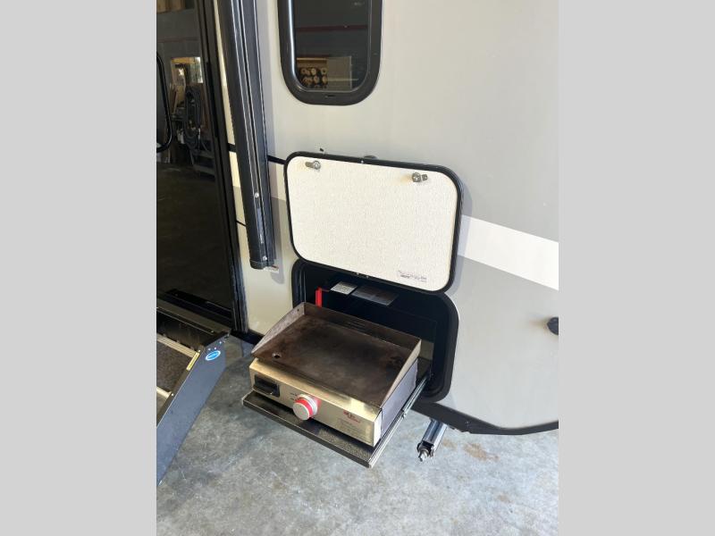 The Forest River Wildwood FSX travel trailer and toy haulers are easy to tow and easy to love, so come take a look! With each model you'll appreciate the 20K BTU furnace and 13,500 BTU A/C to keep you comfortable year around, and the large windows will make the whole unit seem bright and open. The EZ entrance includes an XL folding grab assist handle, and the power awning with LED lights provide an outdoor living space you are sure to love. The lightweight Wildwood FSX travel trailers and toy haulers are your ticket to the great outdoors. Choose yours today!