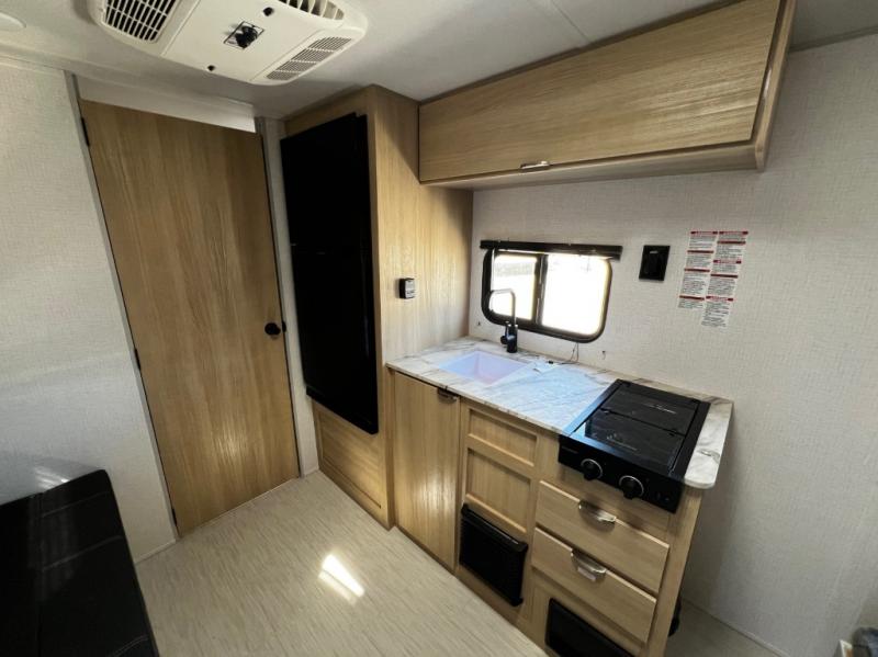 This Limited Edition Wildwood FSX travel trailer is the perfect couples unit! Included you will find a front queen bed with dual wardrobes, and a sofa with overhead storage for seating. Extra thick luxury vinyl flooring is comfortable underfoot and easy to keep clean. The exterior storage has an oversized door for storage so you can fit those bigger items. The Limited Edition Camp Ready package includes a two-burner cooktop with glass stove cover, a microwave oven, roof vents for adequate air flow, a 20 lb. LP bottle, and more.