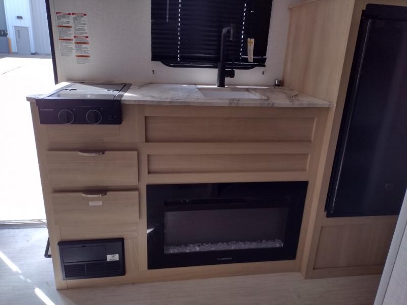 This Limited Edition Wildwood FSX travel trailer provides great value in a lightweight model! Included at no extra cost are a power awning, a 13,500 BTU air conditioner, full-size spare tire, and 4.5 cu. ft. refrigerator. There's also a walk-on roof and prep for a ladder. There's room to sleep six, with a queen bed, a pair of bunk beds, and a convertible sofa. Extra thick luxury vinyl flooring is comfortable underfoot and easy to keep clean. The exterior storage has a large baggage door so you can fit those bigger items. The Limited Edition Camp Ready package includes a two-burner cooktop, 5,000 BTU fireplace, and a 20 lb. LP bottle.