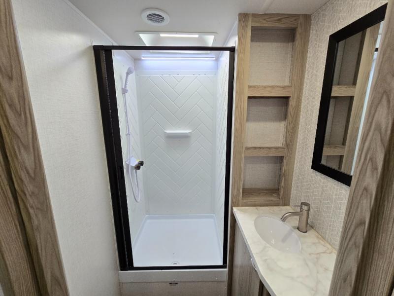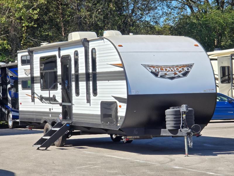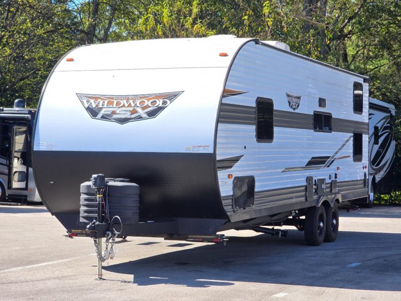 The Forest River Wildwood FSX travel trailer and toy haulers are easy to tow and easy to love, so come take a look! With each model you'll appreciate the 20K BTU furnace and A/C unit to keep you comfortable year around, and the large windows will make the whole unit seem bright and open. The EZ entrance includes an XL folding grab assist handle, and the power awning with LED lights provide an outdoor living space you are sure to love. The lightweight Wildwood FSX travel trailers and toy haulers are your ticket to the great outdoors. Choose yours today!
