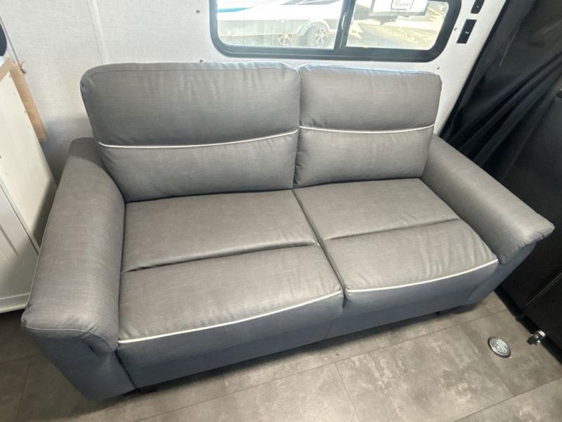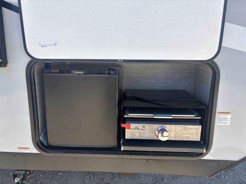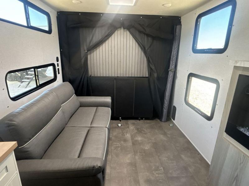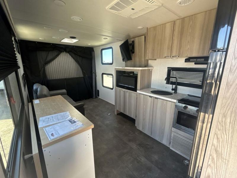 Take your adventures to the max in this MAX toy hauler with more space and features! Unload your dirt bikes from the 14' garage, then convert this space to the 1,500 lb. capacity patio. This model includes two sofa sleepers with a table to dine and let guests sleep over. The main living area will feel more like home with a fireplace, and the full kitchen will allow you to prepare meals for your whole group. If you enjoy cooking outdoors then you will love the outdoor griddle and refrigerator, plus there is an 18' power awning here for shade. After dinner is cleaned up, head to the front private bedroom for a great night's rest and plan to do it all over again tomorrow!