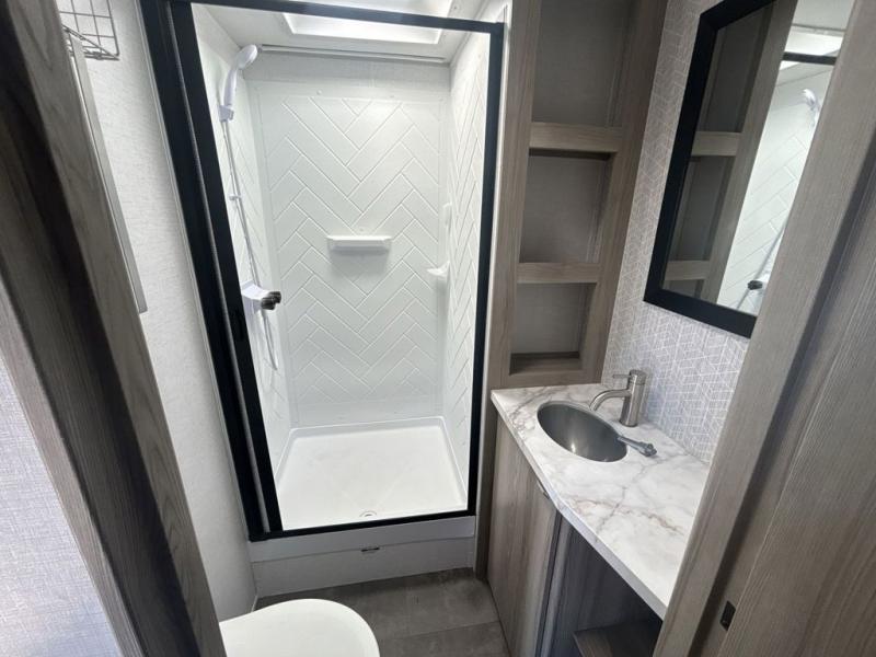 The Forest River Wildwood FSX travel trailer and toy haulers are easy to tow and easy to love, so come take a look! With each model you'll appreciate the 20K BTU furnace and A/C unit to keep you comfortable year around, and the large windows will make the whole unit seem bright and open. The EZ entrance includes an XL folding grab assist handle, and the power awning with LED lights provide an outdoor living space you are sure to love. The lightweight Wildwood FSX travel trailers and toy haulers are your ticket to the great outdoors. Choose yours today!