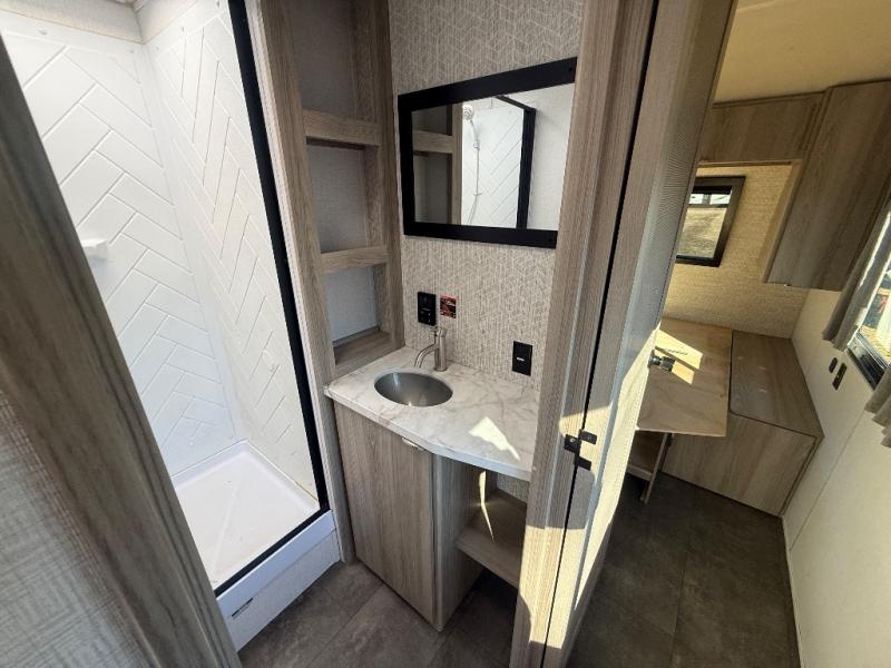 The Forest River Wildwood FSX travel trailer and toy haulers are easy to tow and easy to love, so come take a look! With each model you'll appreciate the 20K BTU furnace and A/C unit to keep you comfortable year around, and the large windows will make the whole unit seem bright and open. The EZ entrance includes an XL folding grab assist handle, and the power awning with LED lights provide an outdoor living space you are sure to love. The lightweight Wildwood FSX travel trailers and toy haulers are your ticket to the great outdoors. Choose yours today!