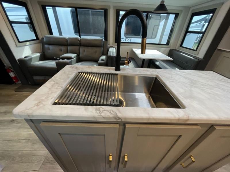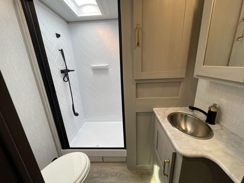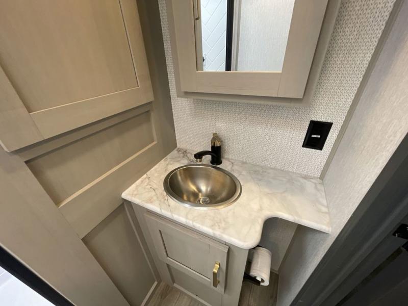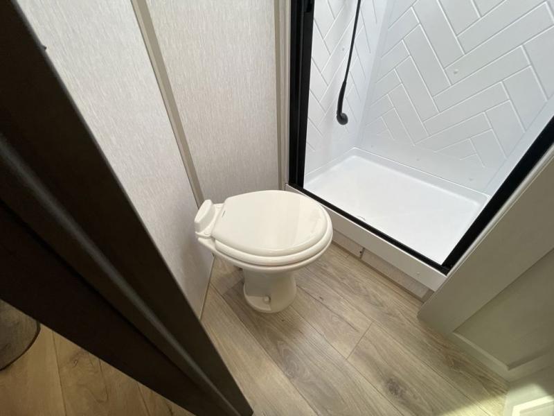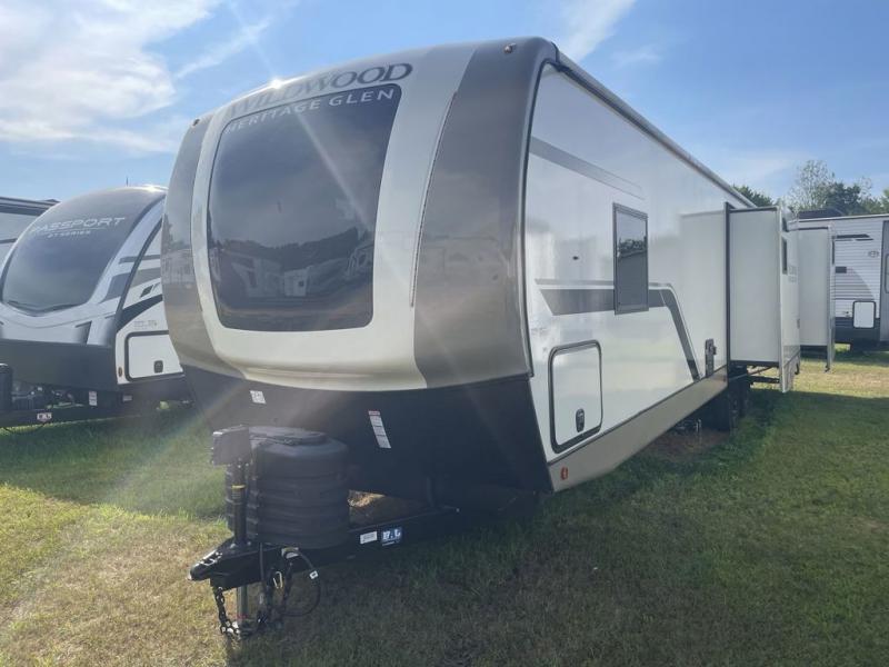With any Wildwood Heritage Glen travel trailer by Forest River, the quality construction, attention to detail and design along with a bright and welcoming interior allows you to relax in comfort with conveniences while exploring outdoors. Each model includes a WeatherShield one piece fiberglass roof, Goodyear radial tires, and an enclosed underbelly with 12V tank heaters on all holding tanks for added protection. You will appreciate the on-demand tankless water heater, along with the 15K BTU Quite Cool A/C and 50 Amp service with a brace for a second A/C. There is an outside shower with hot and cold water, solar prep, a power stabilizer and tongue jack, plus many more exterior conveniences. Head inside to enjoy Nordic marble countertops throughout, yacht trim ceiling finishes, and full length barreled ceilings for additional head room.