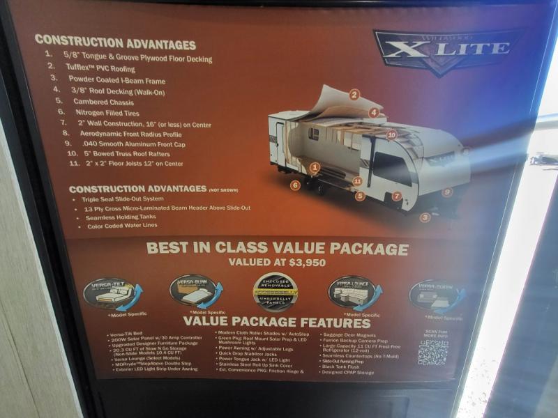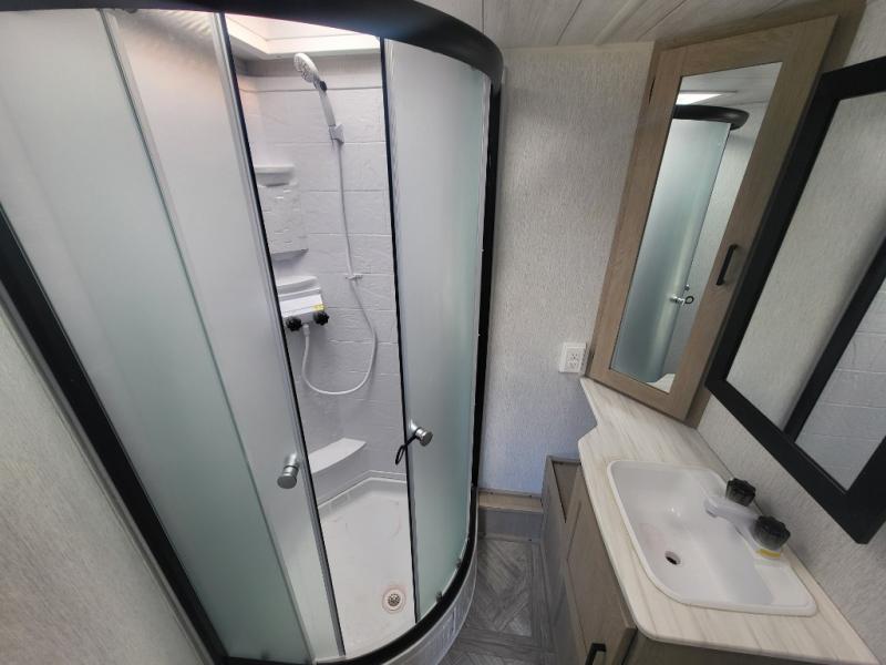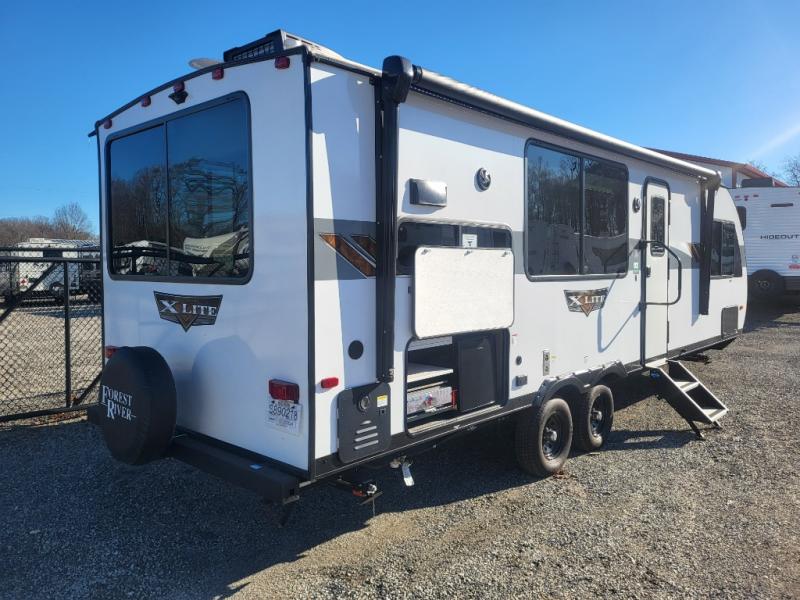 The Forest River Wildwood X-Lite travel trailers are comfortable enough to make any destination feel like home! The Wildwood X-Lite has a Dicor PVC roof membrane, a powder-coated I-beam frame, nitrogen-filled tires, and a cambered chassis as the base for all of its luxurious additions. Within the reliable construction, you will find excellent interior amenities, like the upgraded high-rise spring kitchen faucet, a huge kitchen window, a Bluetooth stereo, and upgraded designer furniture. The Wildwood X-Lite also comes with a pass-through storage compartment for your gear, an upgraded shower head, and a new 60K tankless water heater so you can have hot water when you need it!
