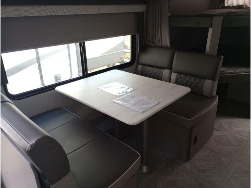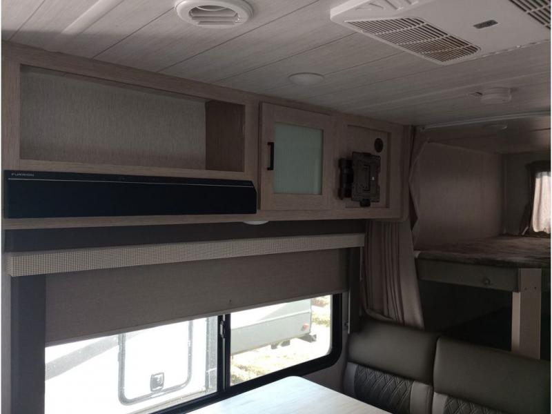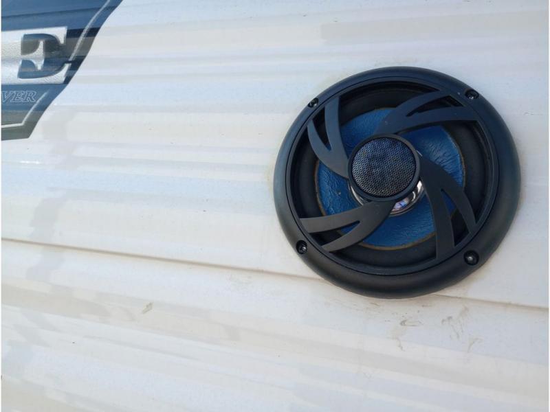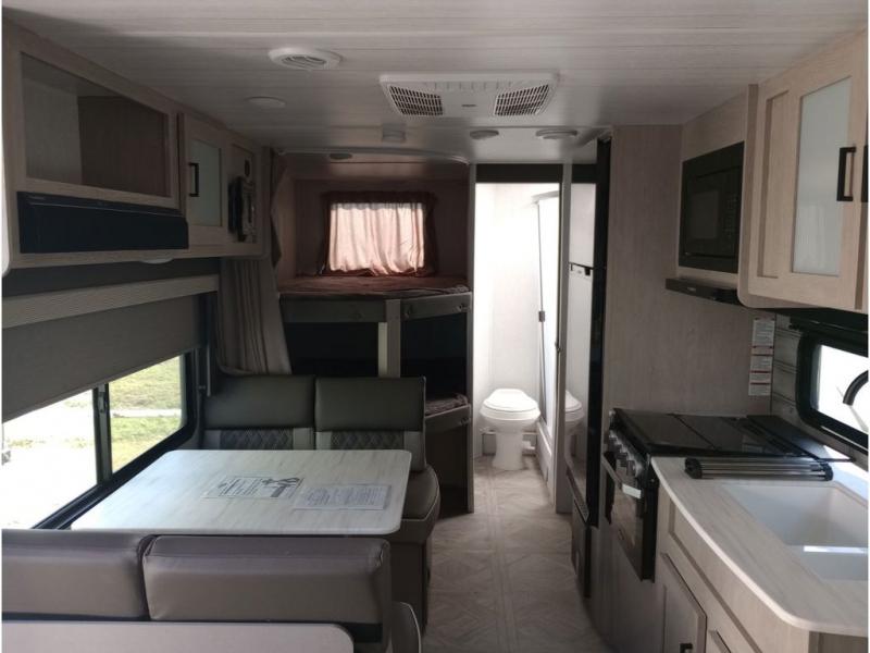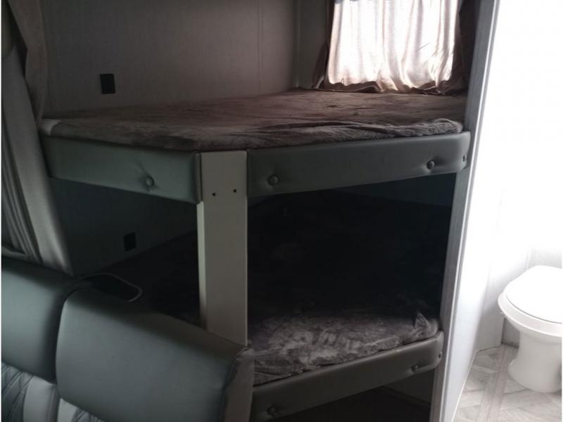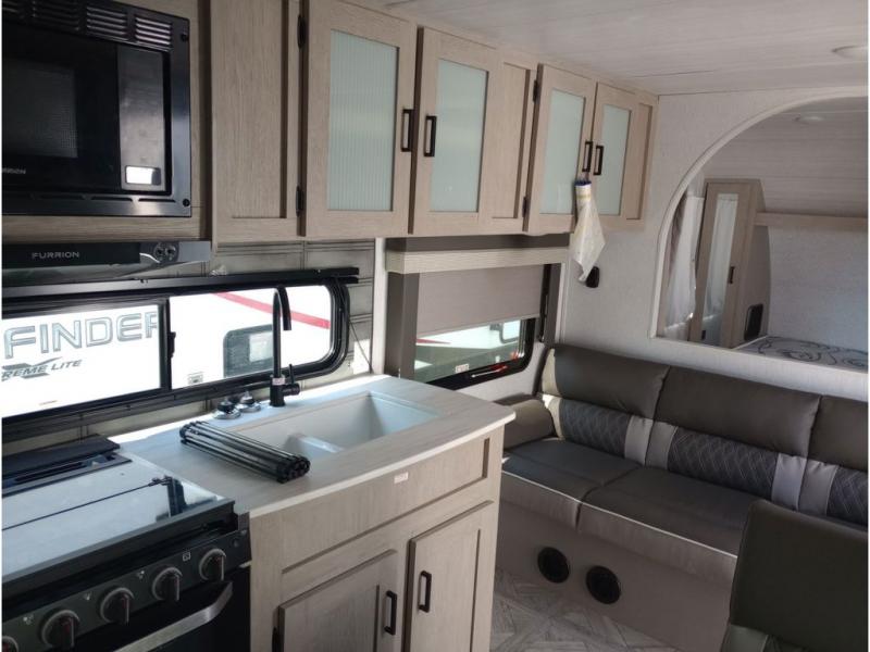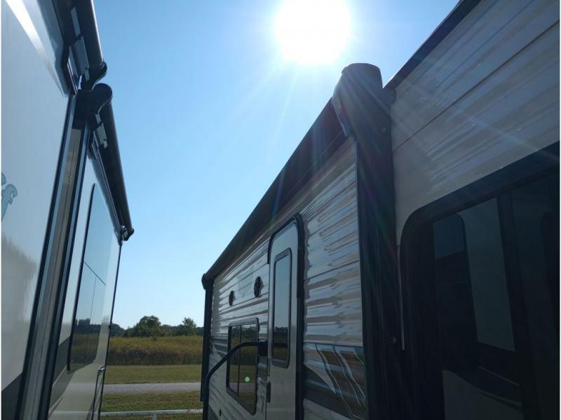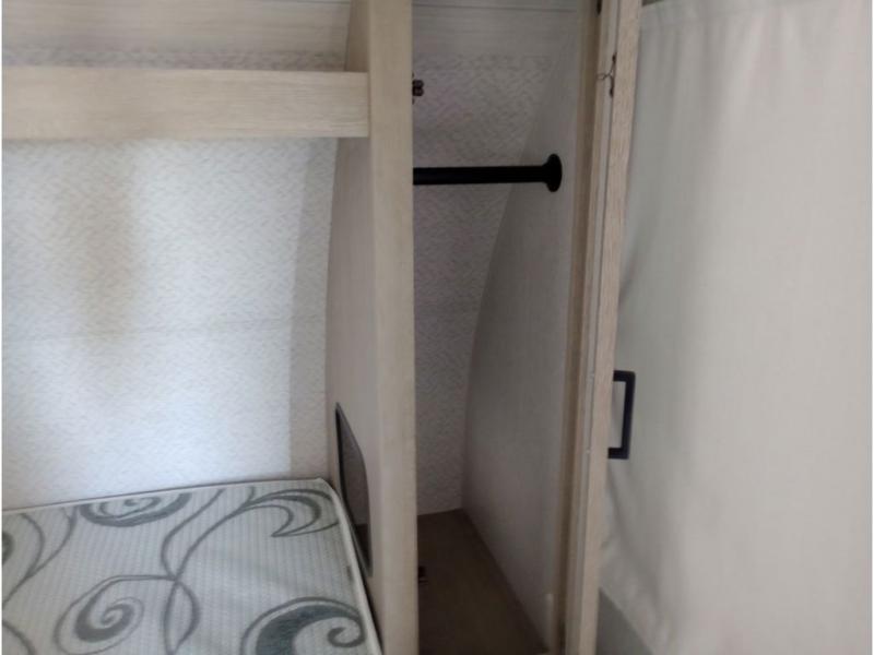 This Wildwood X-Lite travel trailer is packed with features! There is a walk-around custom king bed with Versa-Tilt up at the front that can be sectioned off from the rest of the trailer with a privacy curtain, and the double-size bunks in the back of this trailer will provide you with a compact sleeping space for your little ones. The booth dinette is going to be a great place to sit down together and have a meal when the bugs are too bad outside to sit at the picnic table, and there is also a sofa for relaxation while inside. You will also appreciate the look and function of the seamless countertops in the kitchen, and the 11-cubic foot refrigerator will easily keep your perishable items fresh. There is also an outside camp kitchen option for more choices when cooking for the family.