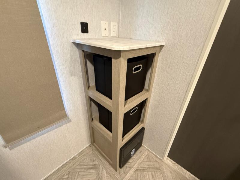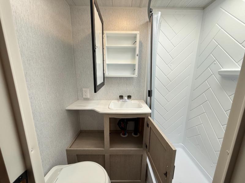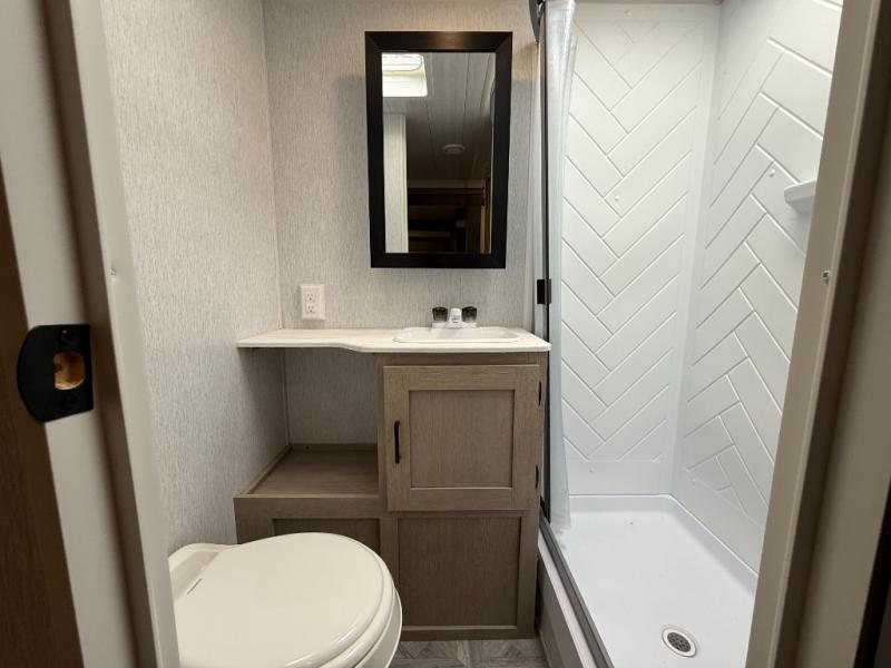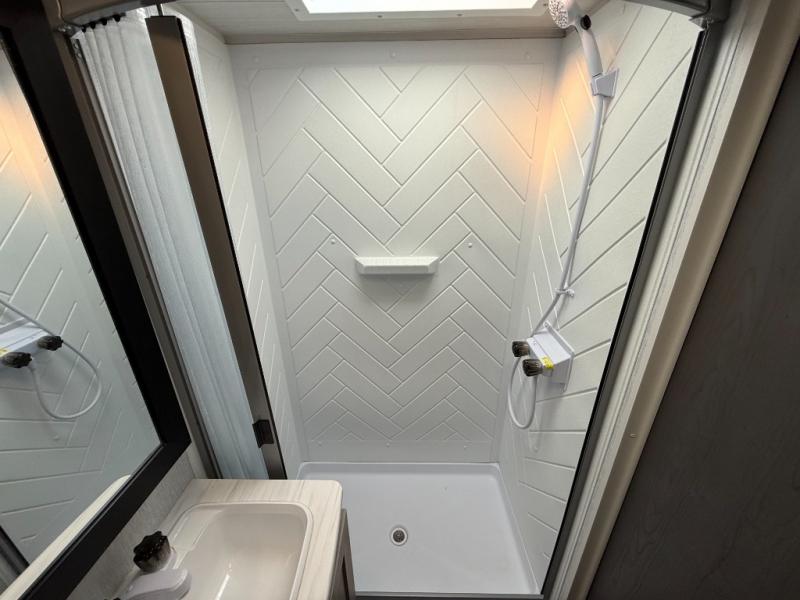 Walk-in shower (in this floorplan) which is a nice upgrade in a 30+ ft trailer.