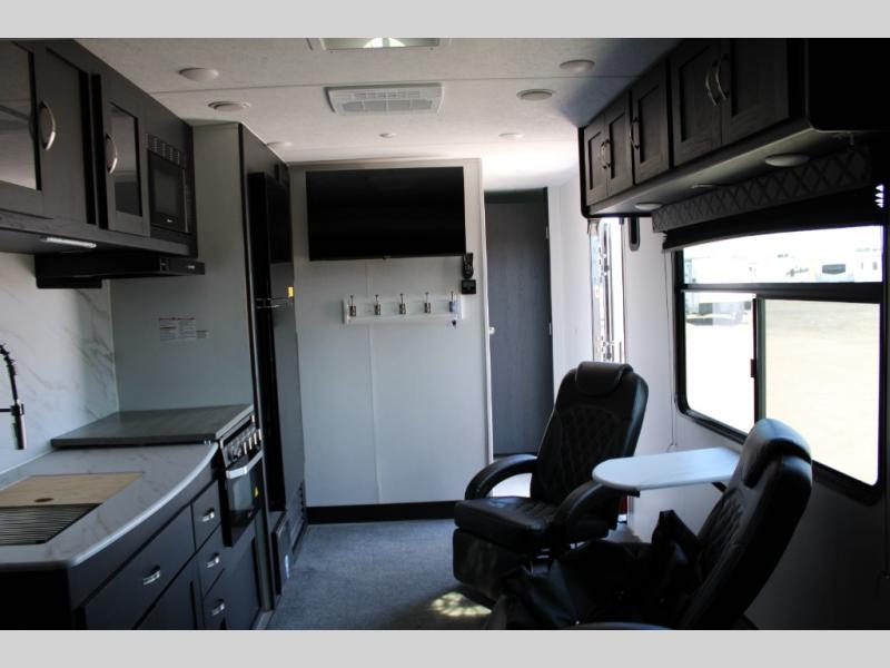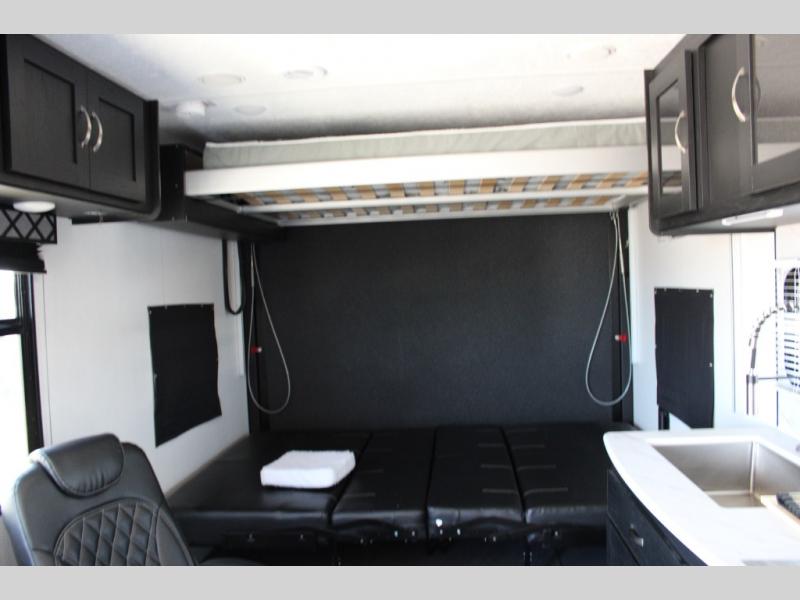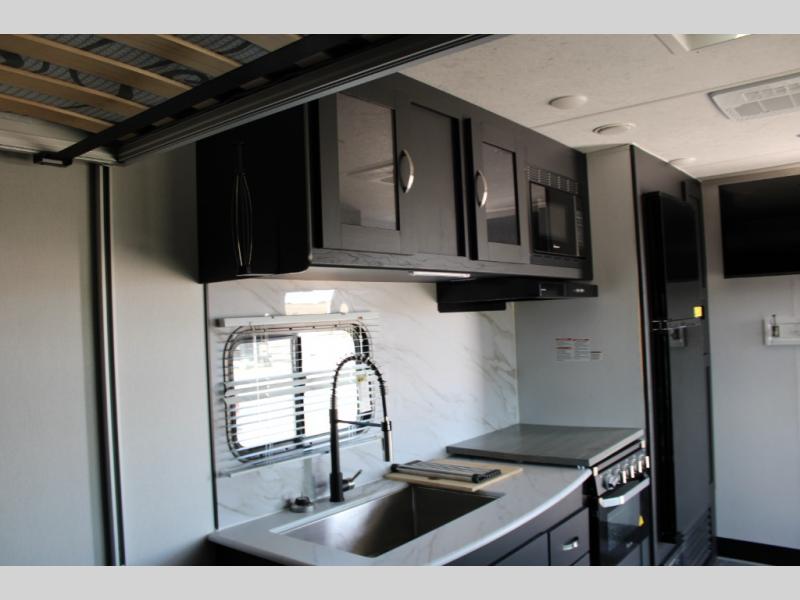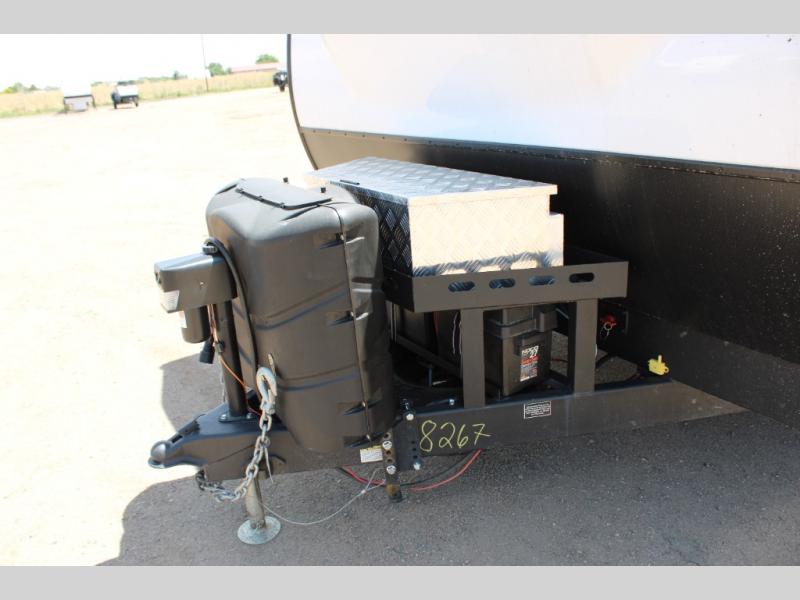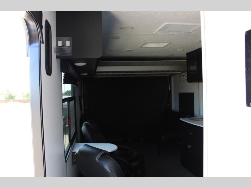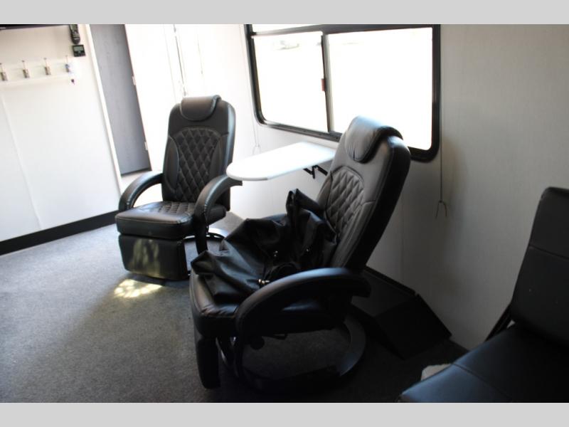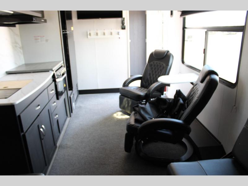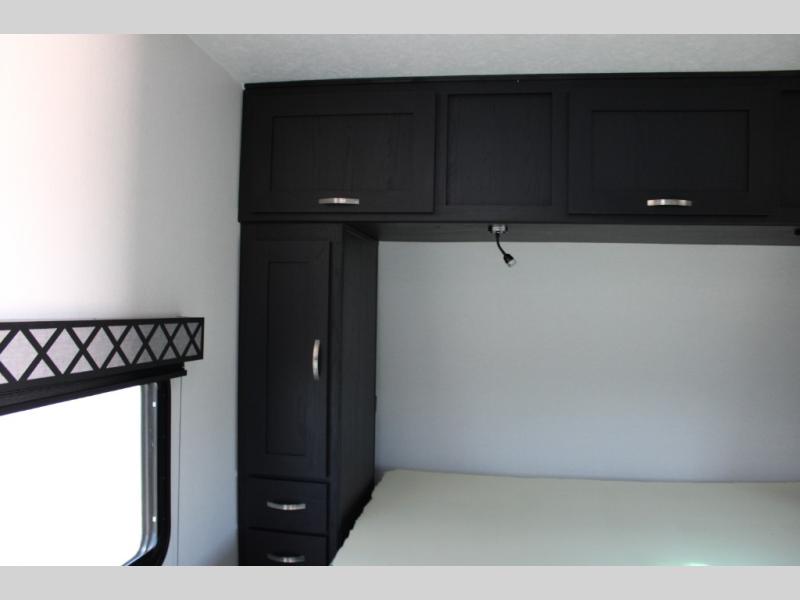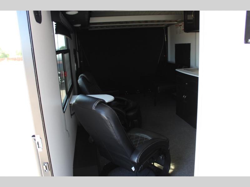 Get ready for a weekend of trail riding with buddies in this toy hauler! You'll have a total of 15' 9" of garage space to load up your dirt bikes or kayaks, and there are two roll-over sofas with a dinette table so you can eat lunch before heading out. The outdoor spray port will allow you to wash off the mud from your tires when you return, and you can choose the optional 30 gallon fuel station so you'll be ready to go the next day. This model also includes a dual entry bath that will create a front master bedroom you are sure to love. Here, you'll sleep soundly on the king bed, and you can keep your clothes wrinkle-free in the dual shirt closets!