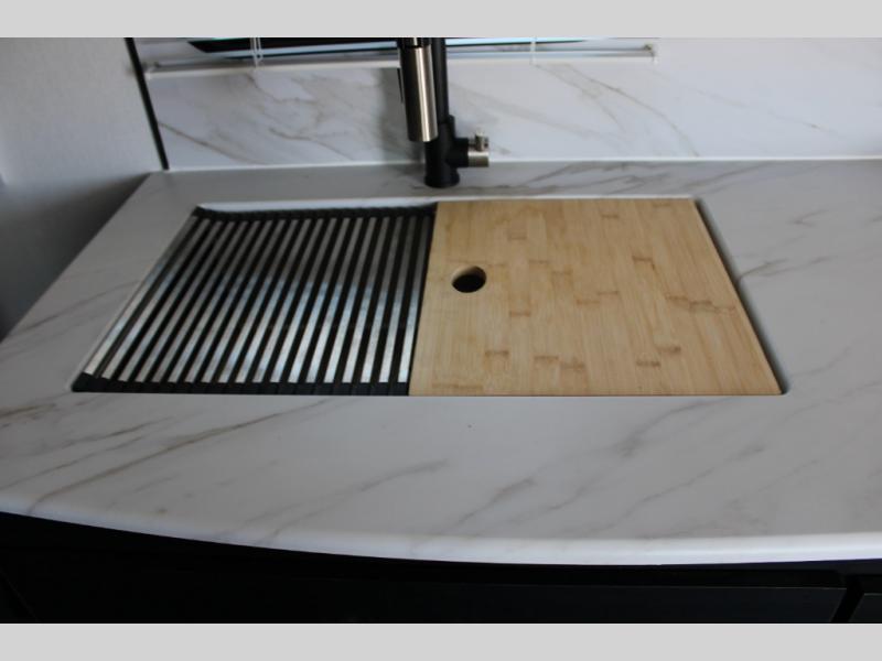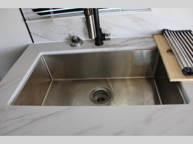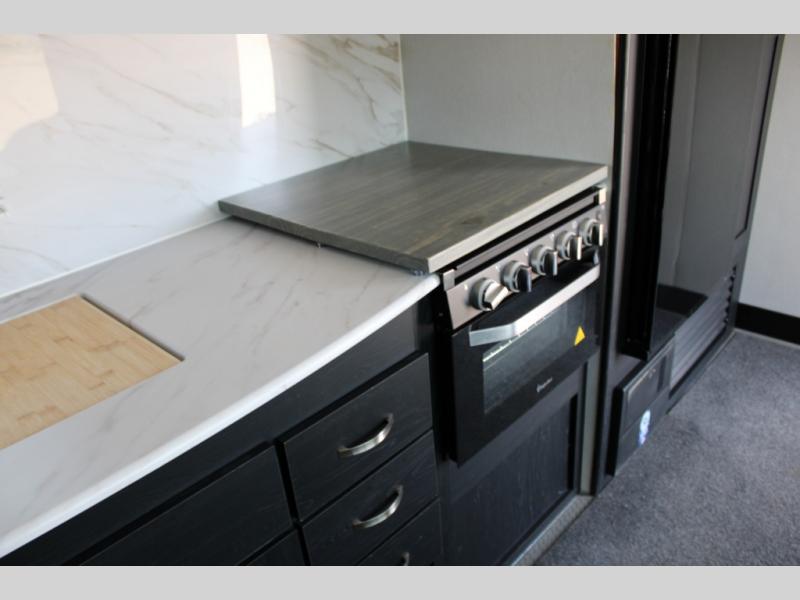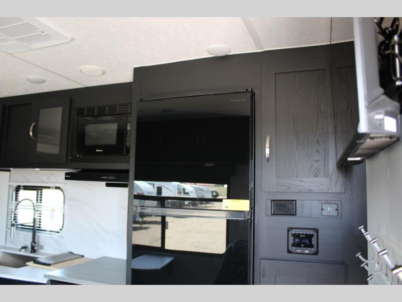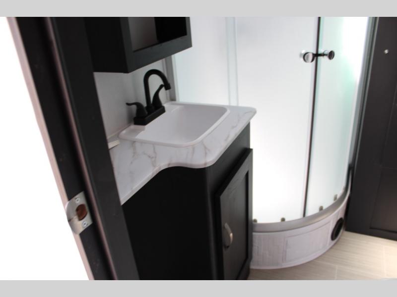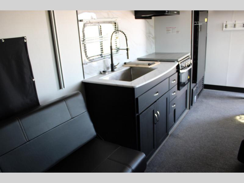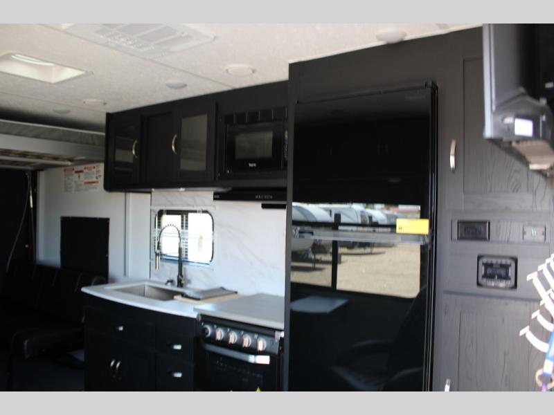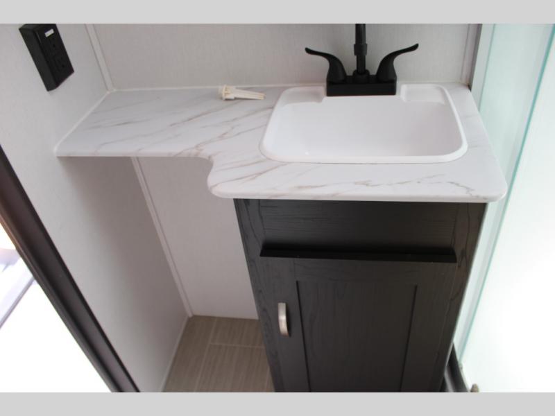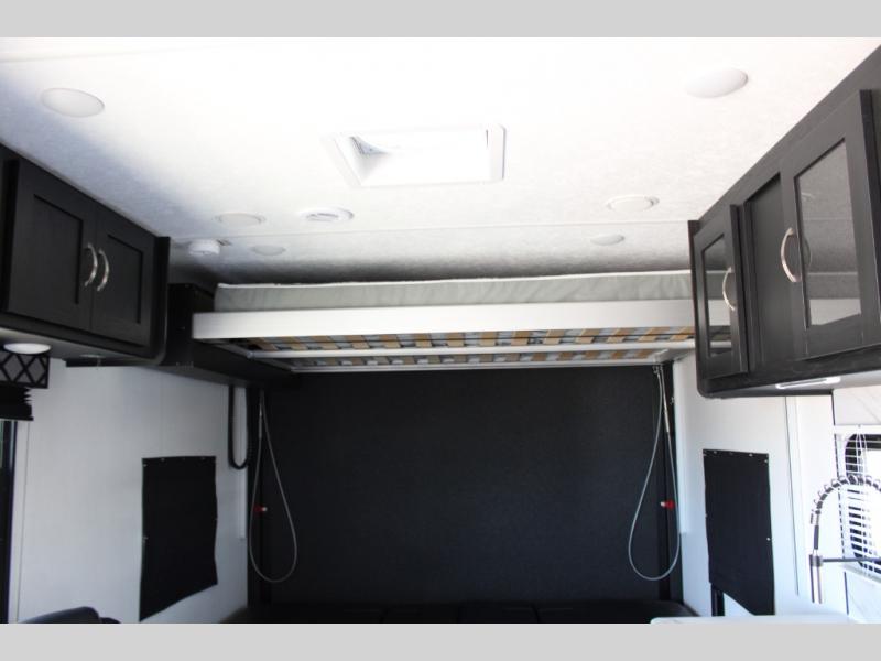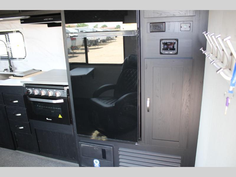 Get ready for a weekend of trail riding with buddies in this toy hauler! You'll have a total of 15' 9" of garage space to load up your dirt bikes or kayaks, and there are two roll-over sofas with a dinette table so you can eat lunch before heading out. The outdoor spray port will allow you to wash off the mud from your tires when you return, and you can choose the optional 30 gallon fuel station so you'll be ready to go the next day. This model also includes a dual entry bath that will create a front master bedroom you are sure to love. Here, you'll sleep soundly on the king bed, and you can keep your clothes wrinkle-free in the dual shirt closets!