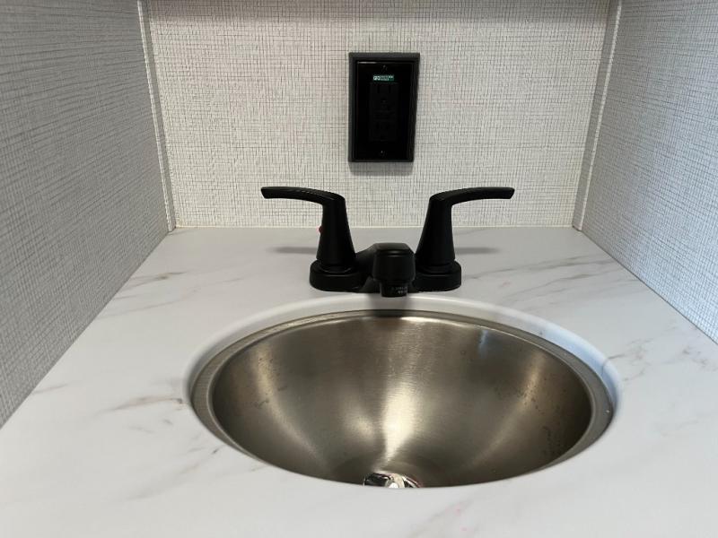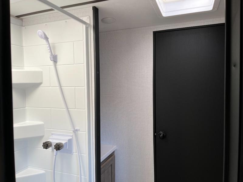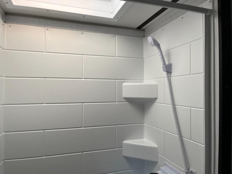 Includes shower, toilet, and vanity for convenience during camp stays or road trips.
