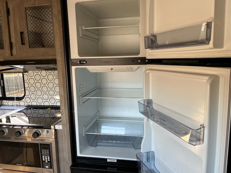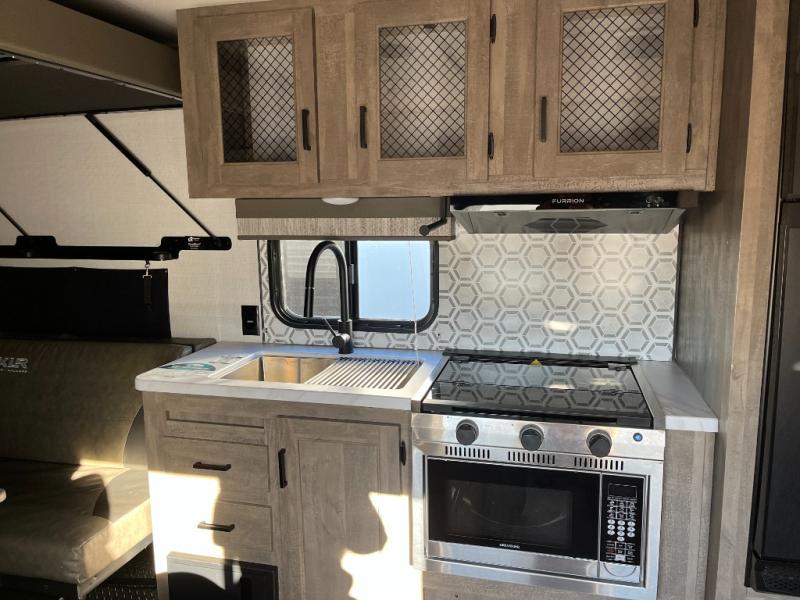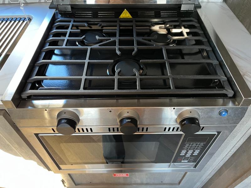 Equipped with cooktop, microwave, refrigerator, and smart storage to make meal prep on the road practical and enjoyable.