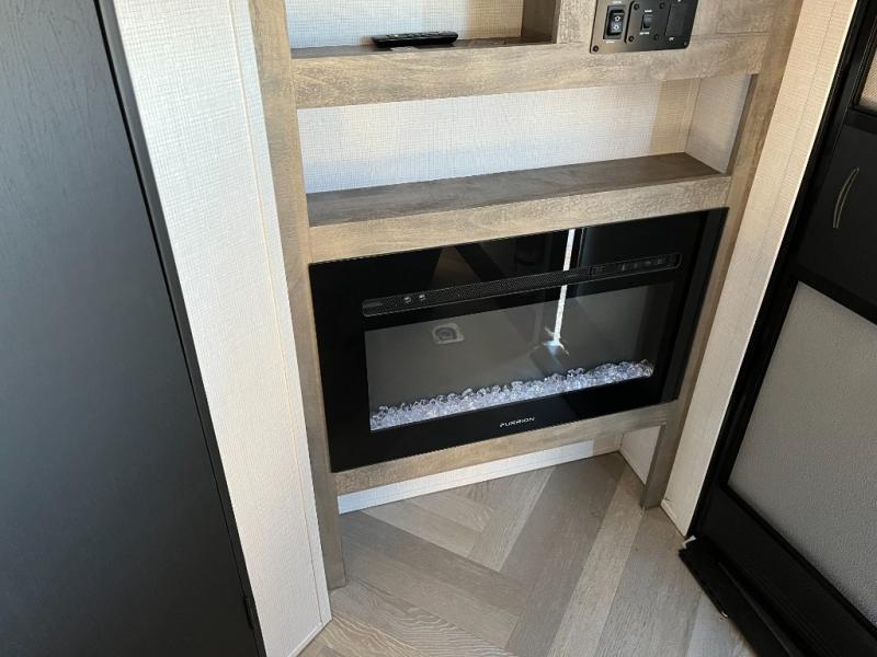 Step inside and appreciate the clever layout that maximizes every inch of space. The garage area is the heart of this toy hauler — designed with reinforced flooring, integrated tie-downs, and easy ramp access so you can load and secure your gear quickly and safely. Once parked, the ramp transforms into a patio or extended living space, adding versatility for socializing, relaxing, or enjoying a meal outdoors.