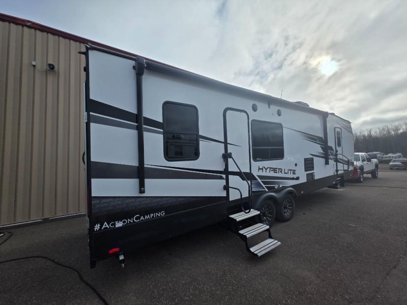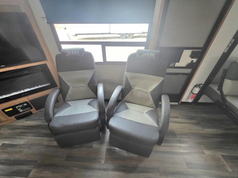 With the XLR Hyper Lite toy hauler travel trailer by Forest River, there is a wider interior with a 74" width even when the slides are retracted in so you can enjoy modern decor, at-home amenities and custom styling. The garages are spacious and include 5,000 lb. cargo tie downs that are anchored to steel plates, an insulated floor, a black rear privacy screen, a ramp patio cable kit for outdoor fun above ground, and Alumi-tread rear entry steps to mention a few highlights. More standout features include MORryde CRE3000 premium suspension that smooths out even the toughest of roads, heavy-duty Dexter axles offering the best in class carrying capacities, and the XLR fully enclosed "Body Armor" underbelly that is insulated and uses a panel system for ease of access. So when you want to play hard, choose an XLR Hyper Lite that offers upgraded features, quality construction, and allows you the control of venturing on or off road!